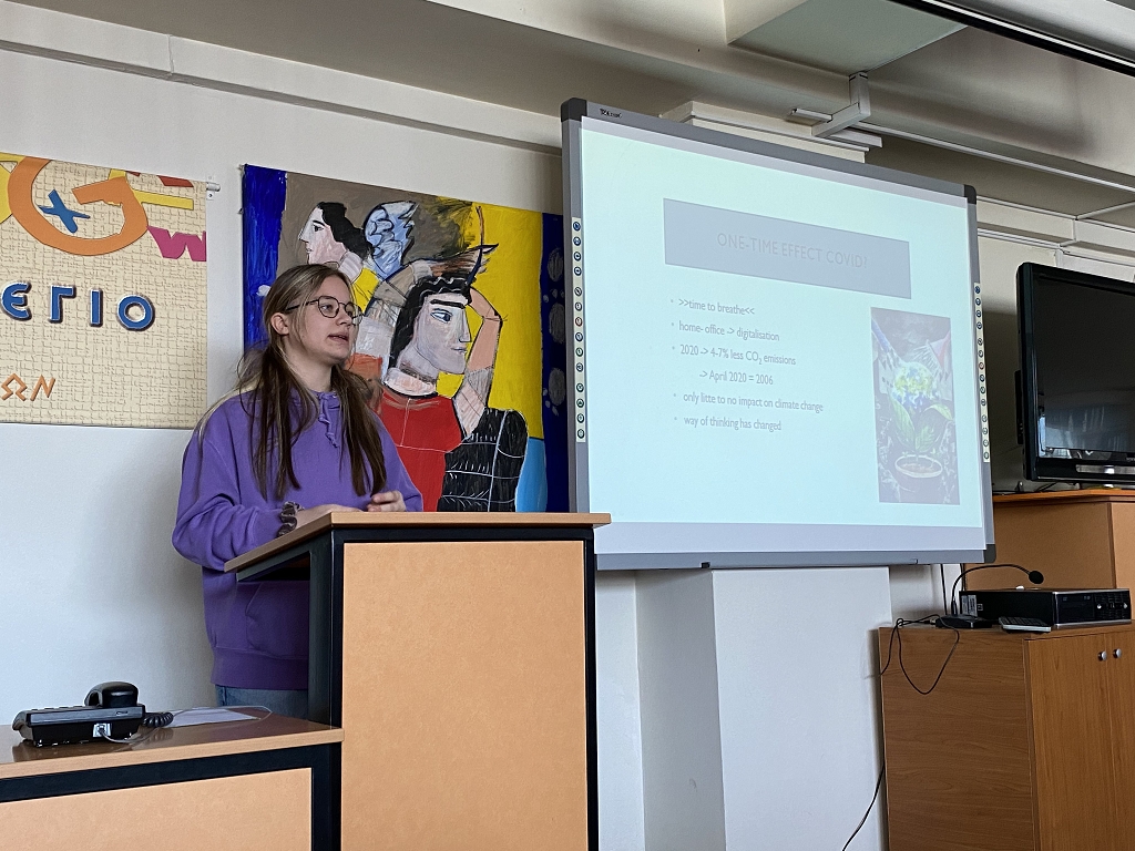 Am Montag sorgten die neun SchülerInnen des Stiftsgymnasiums mit wohlvorbereiteten und erfrischend vorgetragenen Referaten für einen guten Einstand. Das interessierte Auditorium ließ sich in Themen informieren wie z. B. Climate-Activism in Austria / Windfarming am Beispiel Handalm, Weinebene / How dangerous is climate change for Austria? / One-time effect of Covid 19 in Austria