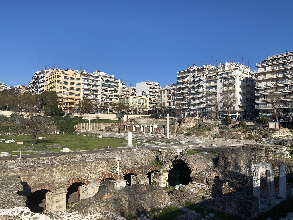 Die Thessaloniki-Tour mit dem Bus am frühen Nachmittag ließ eine Ahnung von der Außergewöhnlichkeit und den besonderen topographischen Verhältnissen dieser Stadt aufkommen: Griechisch-römische Antike und byzantinisches Kulturerbe auf Schritt und Tritt, freundlich eingebettet in die Betriebsamkeit einer modernen Stadt.
