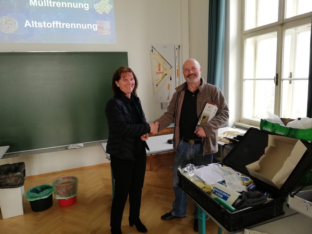 Damit der Müll aber auch im richtigen Kübel landet, fand für die 1.-3. Klassen und der Unterstufe und die 4d - Klasse ein Mülltrenn-Workshop statt.