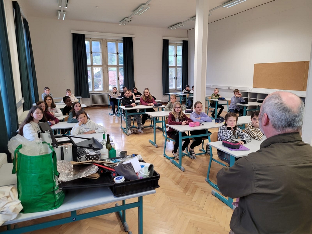Bernhard Urbani, Betriebsleiter vom Umweltzentrum Lavanttal und Umweltberater, erläuterte an drei Tagen anschaulich und humorvoll, wie Mülltrennung einfach und richtig funktioniert.