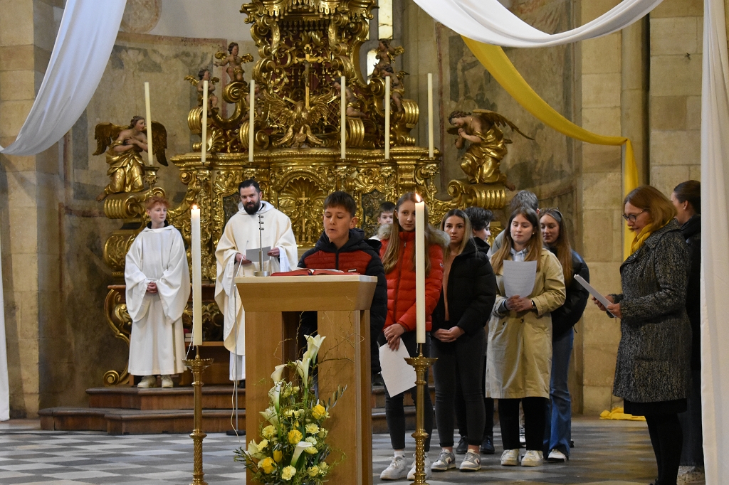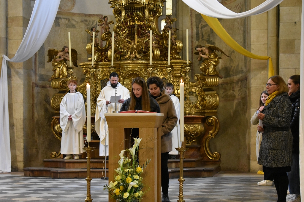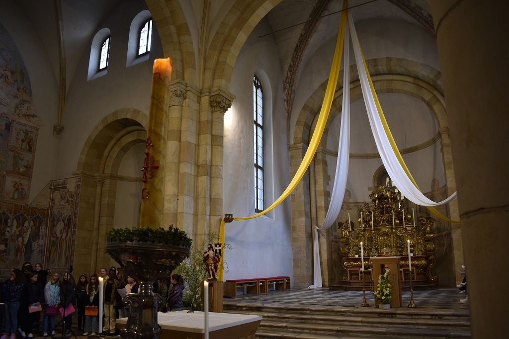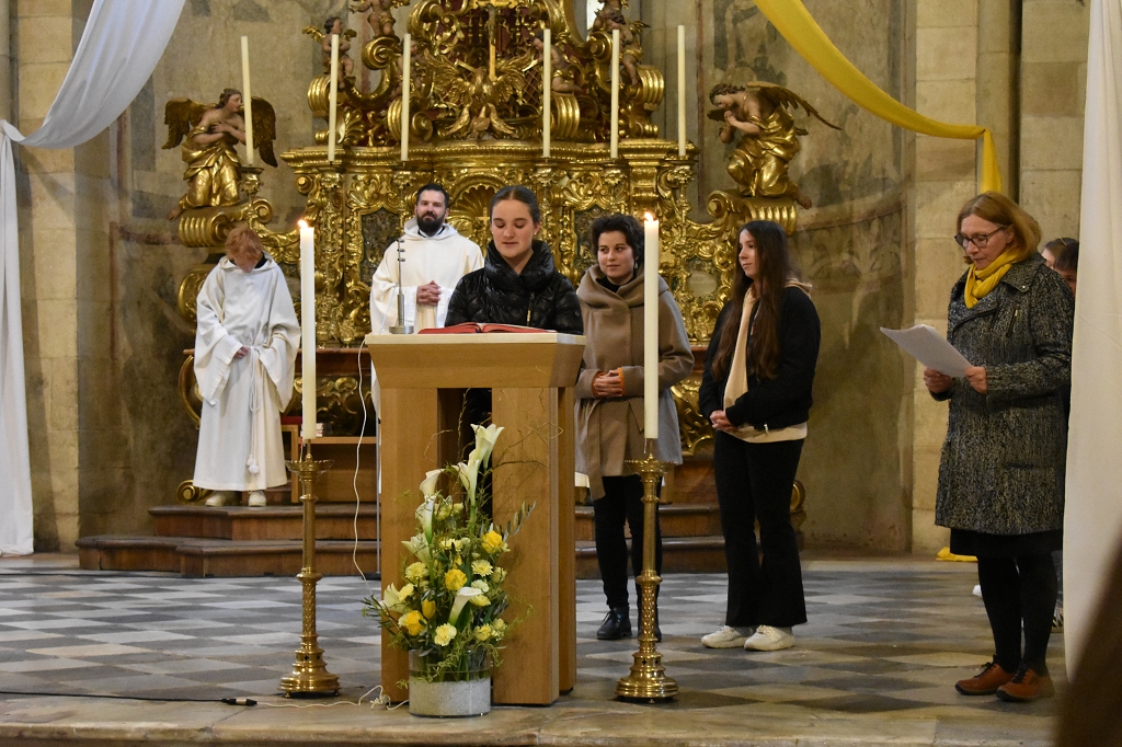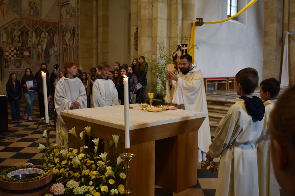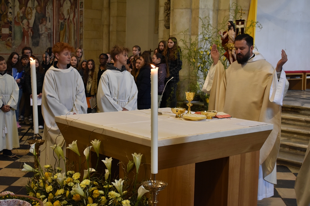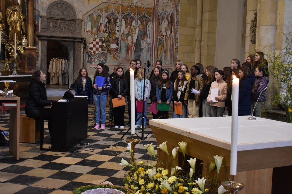 Beim Auferstehungsgottesdienst in der Stiftskirche wurde nicht nur kräftig Halleluja gesungen, sondern auch darauf hingewiesen, dass der Weg der beiden Jünger unterwegs nach Emmaus auch unseren eigenen Weg mit Jesus darstellt. Nicht immer können wir seine Nähe erkennen. Manchmal sind es Menschen, die uns dabei helfen, dass auch wir im Leben Halleluja singen können. Musikalisch umrahmt wurde der feierliche Gottesdienst in bewährter Weise vom Schulchor unter der Leitung von Profin. Maga. Almut Wakonig-Dalton und dem Bläserensemble unter der Leitung von Prof. Thomas Zdravja. Den Gottesdienst zelebrierte Mag. Ioan Bilc, der es ausgezeichnet verstand, mit uns zu feiern und uns die Freude der österlichen Zeit zu vermitteln.