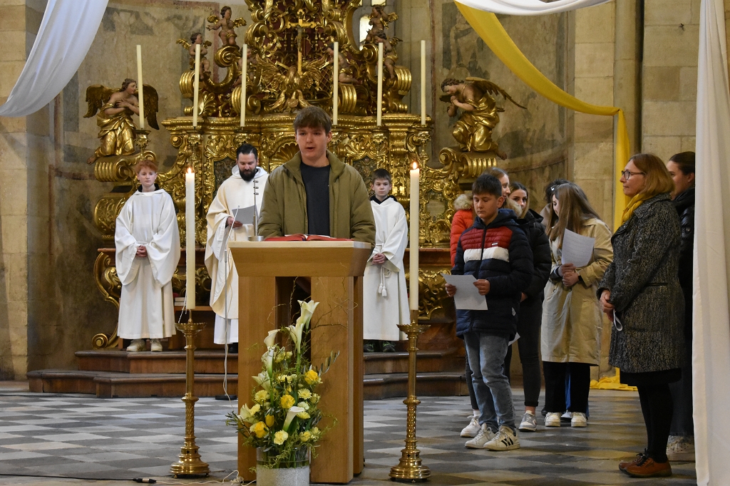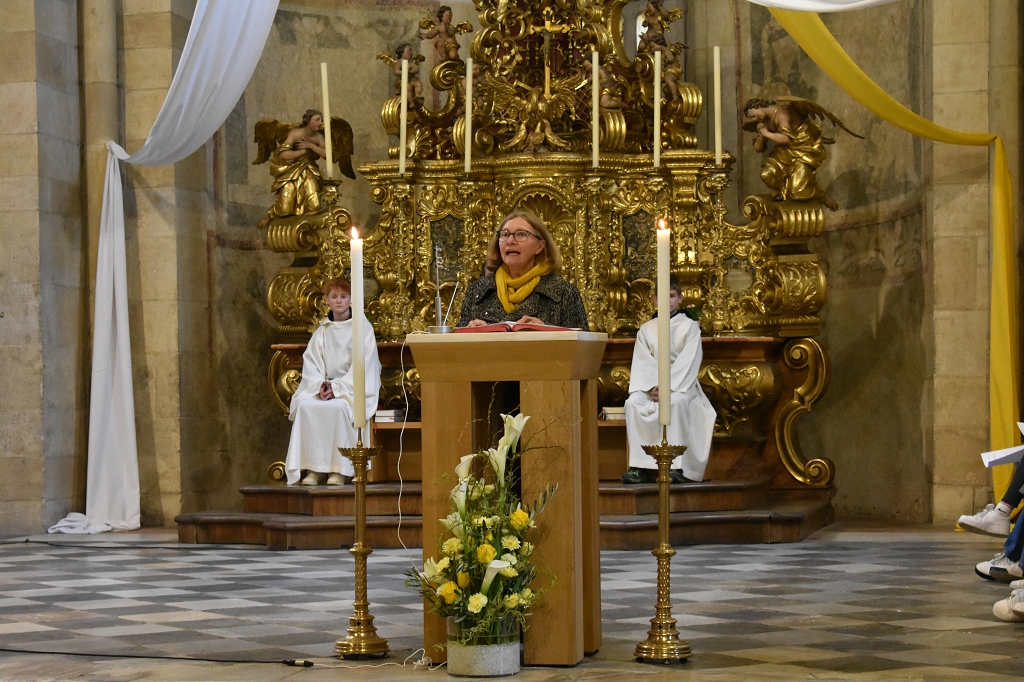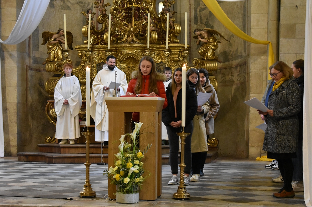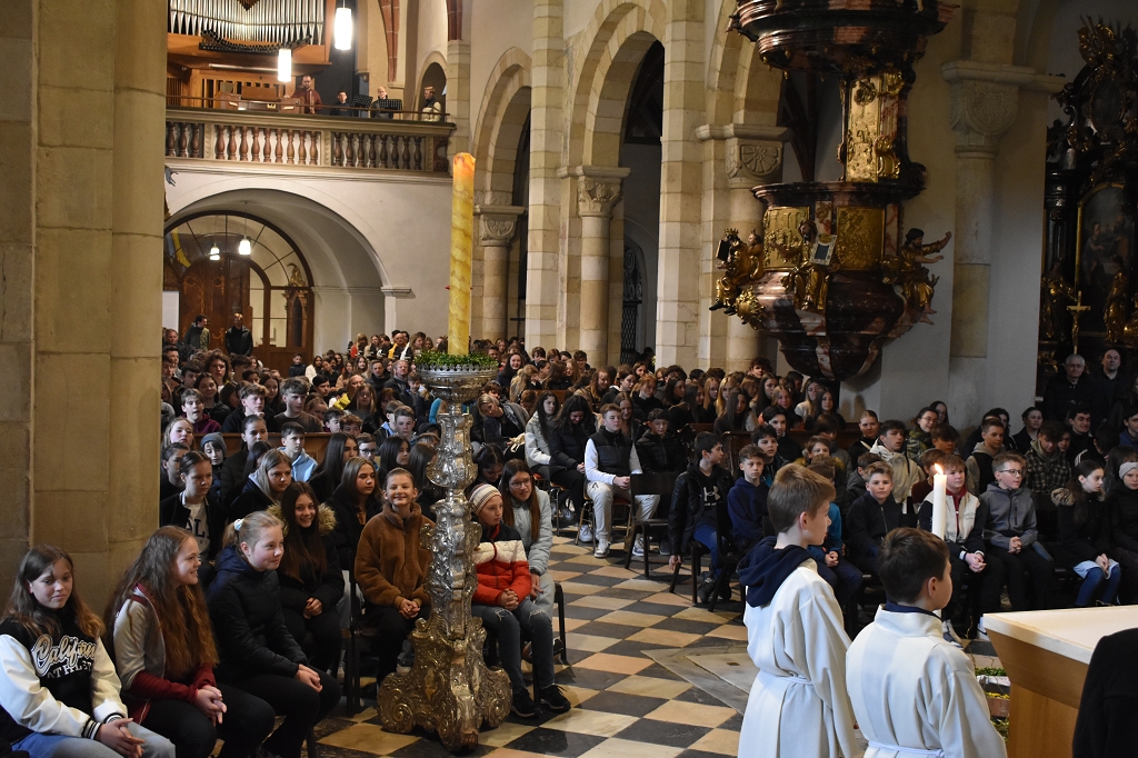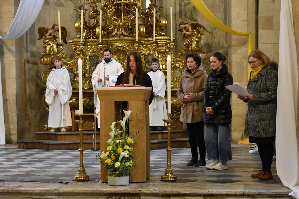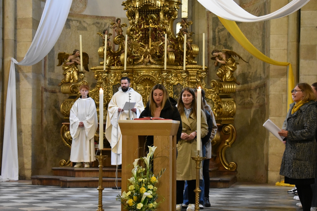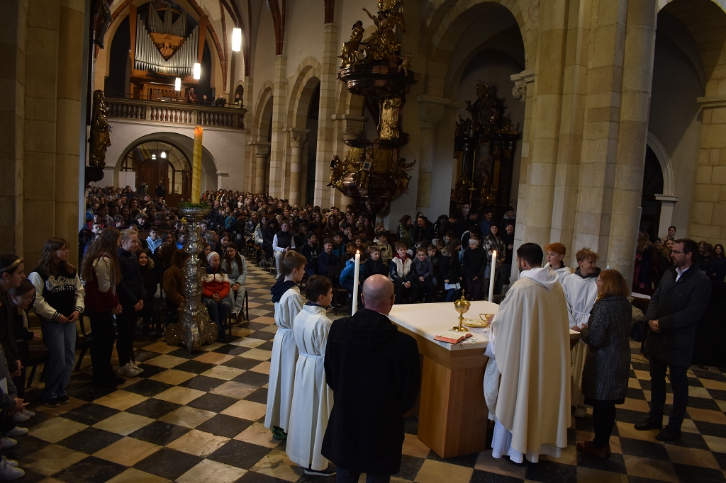 Beim Auferstehungsgottesdienst in der Stiftskirche wurde nicht nur kräftig Halleluja gesungen, sondern auch darauf hingewiesen, dass der Weg der beiden Jünger unterwegs nach Emmaus auch unseren eigenen Weg mit Jesus darstellt. Nicht immer können wir seine Nähe erkennen. Manchmal sind es Menschen, die uns dabei helfen, dass auch wir im Leben Halleluja singen können. Musikalisch umrahmt wurde der feierliche Gottesdienst in bewährter Weise vom Schulchor unter der Leitung von Profin. Maga. Almut Wakonig-Dalton und dem Bläserensemble unter der Leitung von Prof. Thomas Zdravja. Den Gottesdienst zelebrierte Mag. Ioan Bilc, der es ausgezeichnet verstand, mit uns zu feiern und uns die Freude der österlichen Zeit zu vermitteln.