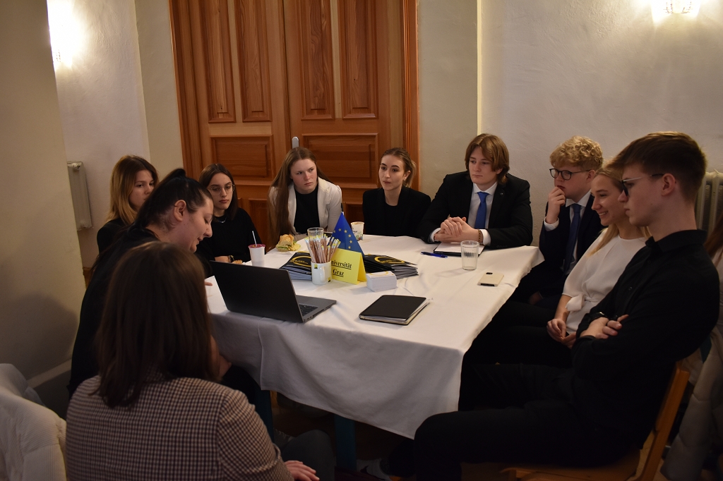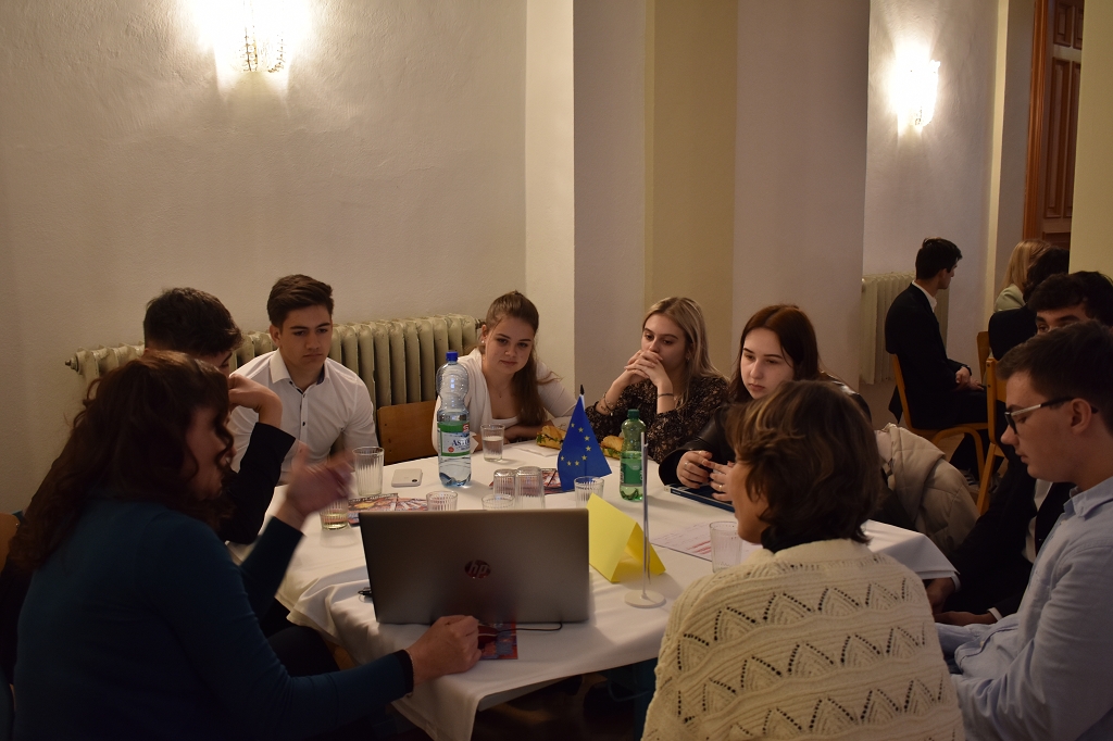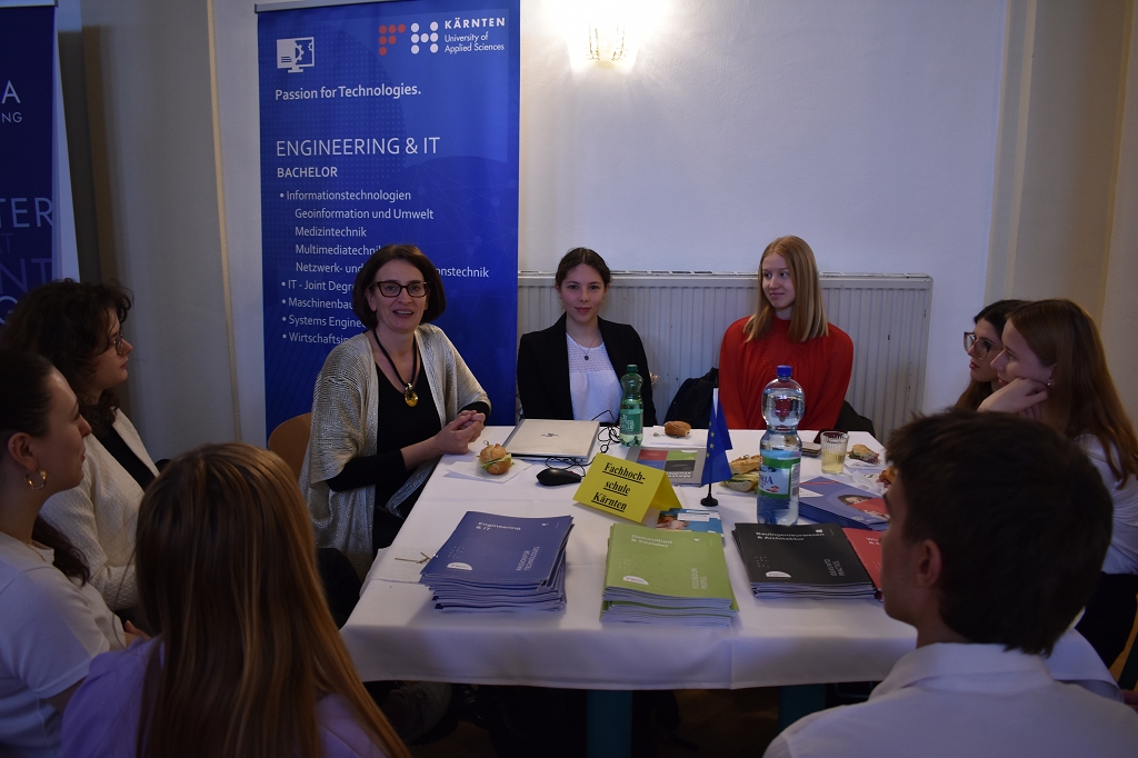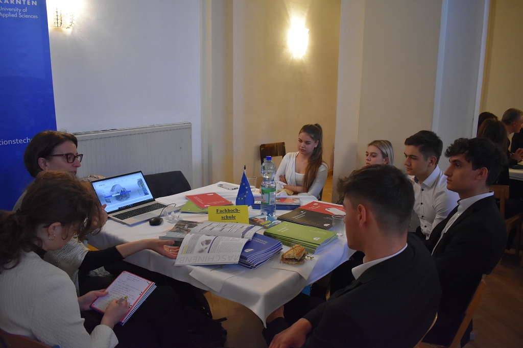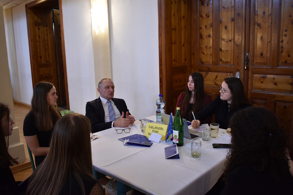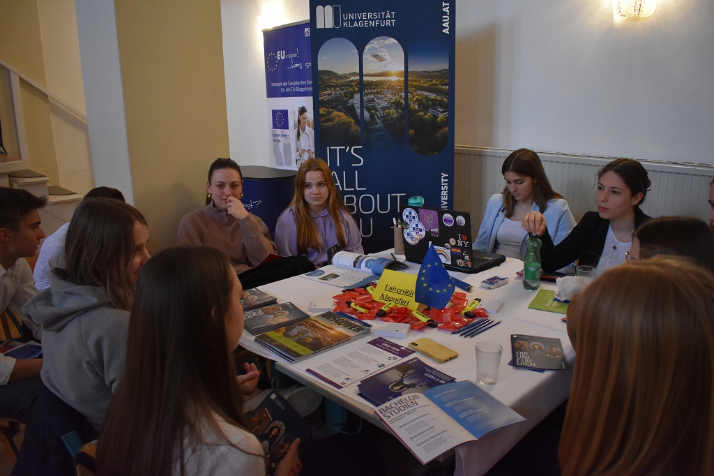 Gemeinsam mit den oben genannten EU-Experten, Univ. Prof. Dr. Franz Kerschbaum und Vertretern der Universitäten Graz, Klagenfurt, Leoben und Maribor, sowie der Fachhochschule Kärnten und des Europahaus Klagenfurt diskutierten die 8. Klassen des Stiftsgymnasiums St. Paul und unserer Partnerschule Škofijaska gimnazija Anton Martin Slomšek an 10 Tischen über Ausbildungschancen im Alpe-Adria-Raum, Forschung und Wissenschaft in der EU, Bildungssituation in den Regionen und aktuelle Themen der EU.