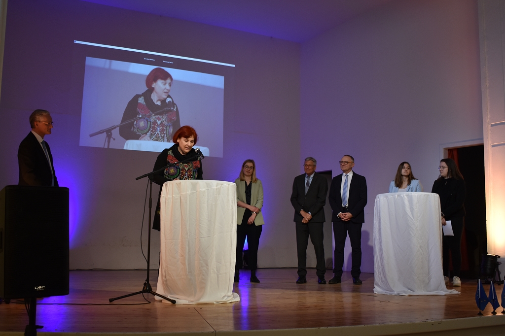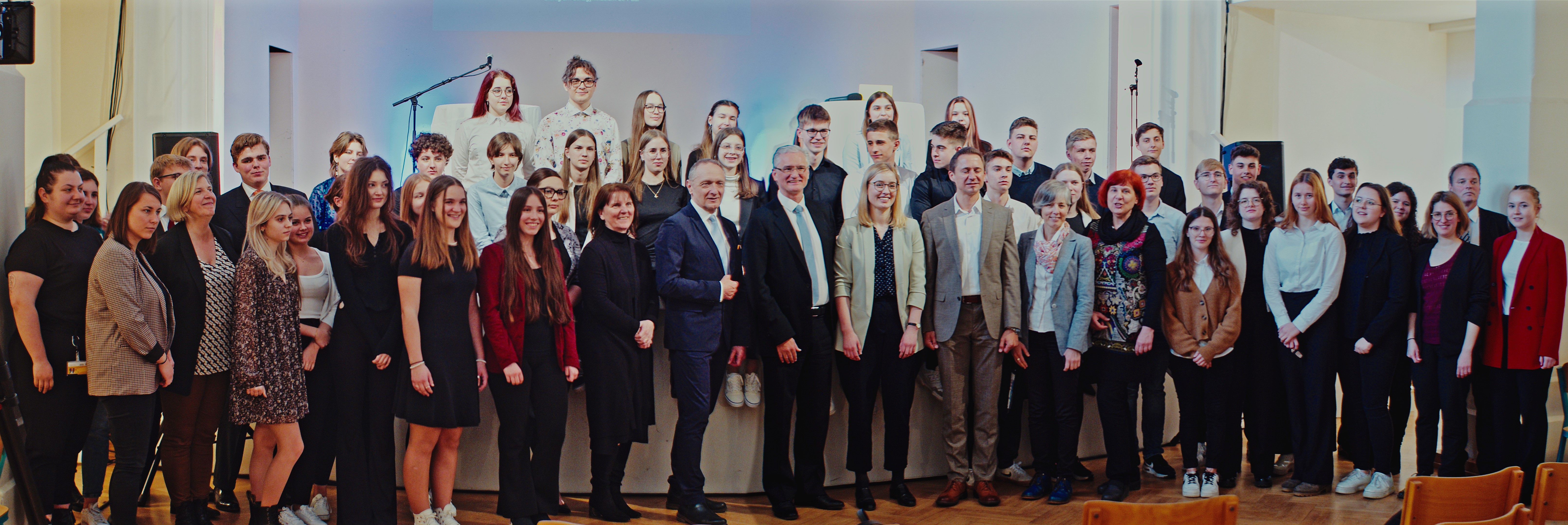 Direktorin Mag. Ines Leschirnig-Reichel konnte bei der hochkarätig besetzten Veranstaltung Landeshauptmann Dr. Peter Kaiser, Dr. Christian Gsodam (Europäischer Ausschuss der Regionen), Anna Seip, MS (Europäische Kommission), Univ. Prof. Dr. Franz Kerschbaum (PRO SCIENTIA), Bürgermeister Stefan Salzmann sowie Vertreterinnen unserer Partnerschule Škofijaska gimnazija Anton Martin Slomšek (Maribor) begrüßen.