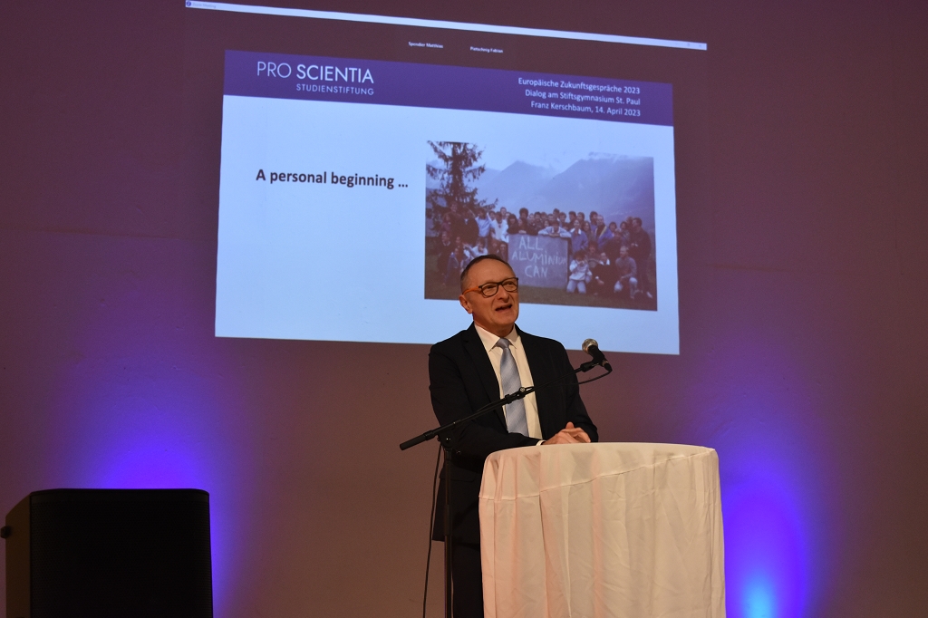 Am Freitag, dem 14. April 2023, fanden im Festsaal des Konviktes des Stiftsgymnasiums St. Paul zum zweiten Mal die Europäischen Zukunftsgespräche, diesmal zum Thema „Das europäische Jahr der Aus- und Weiterbildung – Forschungsraum Alpe-Adria: wo liegen meine Chancen?“, statt.