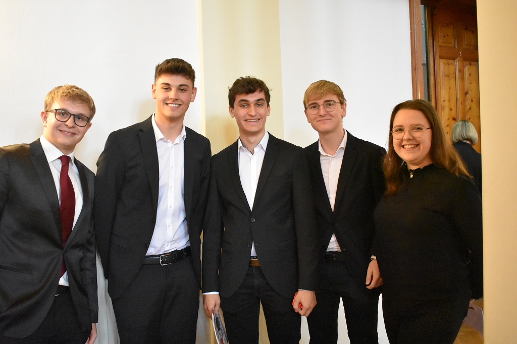Da die diesjährigen Zukunftsgespräche internationaler aufgestellt waren, war nicht nur die Veranstaltungssprache Englisch. In vier Sprachen eröffneten Magdalena Roschitz (8b), Maximilian Findenig (8a), Gabriel Doujak (8c) und Matthias Roschmann (8c) das Event.