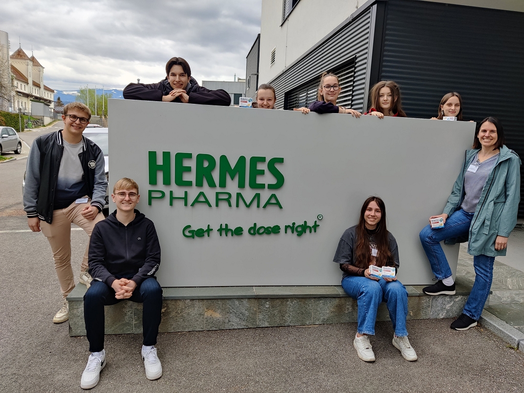 Am 18.04.2023 besuchten die Teilnehmer:innen des Wahlpflichtfachs Chemie der 8. Klassen in Begleitung von Frau Prof. Veidl die Hermes Pharma in Wolfsberg und erhielten einen Einblick in die Bereiche Qualitätssicherung und Analytik dieses modernen Pharmaunternehmens.