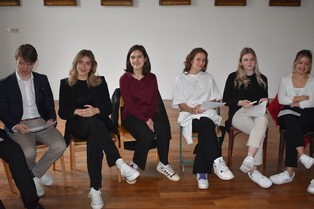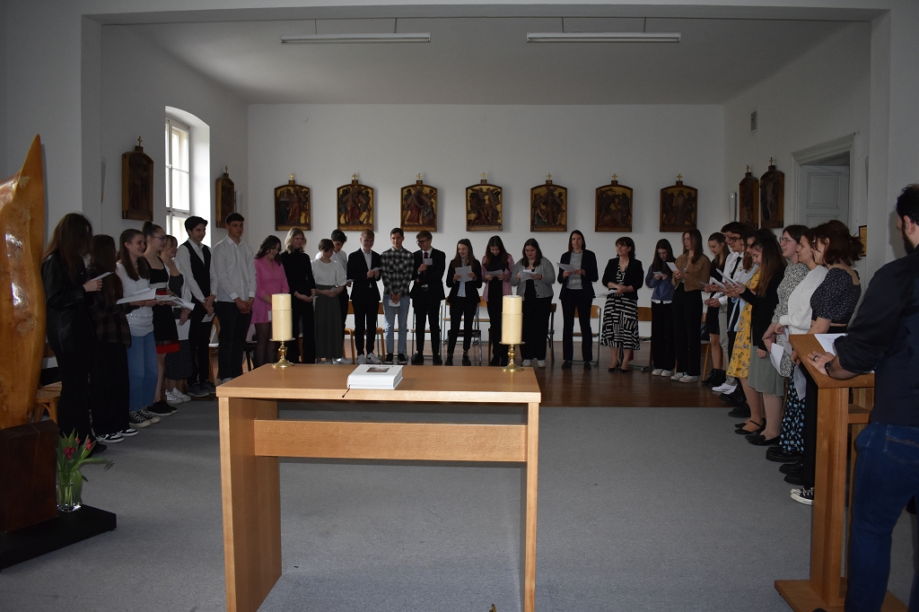 Am Freitag, dem 28. April 2023, trafen die Maturantinnen und Maturanten des heurigen Jahrgangs mit der Schulleiterin, ihren Klassenvorständ*Innen und Religionslehrer*Innen zusammen, um für die folgende und durchaus beschwerliche Zeit der Matura den Segen Gottes zu erbitten. Den Segen zu erbitten und sich gleichzeitig daran zu erinnern, was Verantwortung in und für die Welt zu übernehmen, heißt, jedoch auch, was es heißen und bedeuten kann, die je eigenen Sorgen vertrauensvoll in Gottes Hände zu legen.