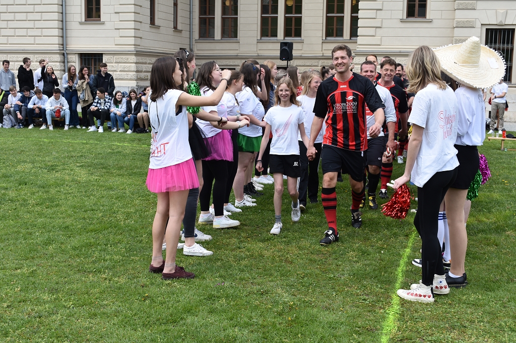 An jenem Tag, an dem die Maturanten und Maturantinnen sich ihr Abschlusszeugnis der 8. Klasse abholen durften, hatten sie noch eine besonders herausfordernde Prüfung zu bestehen: das Fußballmatch gegen die Professoren.