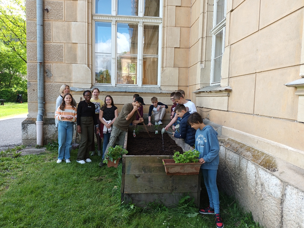Dieses wurde unter der regen Beteiligung der Schülerinnen und Schüler der 1a, 2a, 3a und 3b Klasse der Tagesheimschule neugestaltet. Mit viel Engagement und Einsatz hat man Unkraut gejätet, umgestochen, die neue Hochbeeterde eingearbeitet und Erdbeeren, Radieschen, Paprika, Snackgurken, Karotten und Kresse gepflanzt. Begeistert vom grünen Daumen der Schülerinnen und Schüler zeigte sich Direktorin Mag. Ines Leschirnig-Reichel. Nun heißt es abzuwarten und auf eine gute Ernte zu hoffen. Mehr Bio geht nicht!