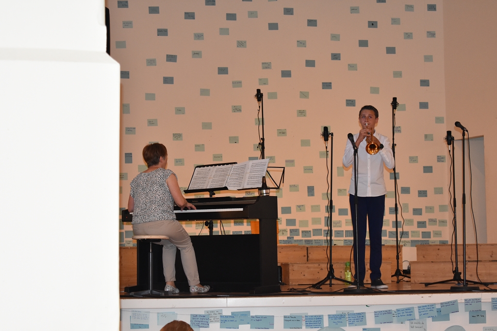 Ergänzt wurde das Programm durch Darbietungen der Prima la musica – Preisträger Samuel Novak, 3A (Landeswettbewerb – Akkordeon) und Clemens Hinteregger, 2B (Landes- und Bundeswettbewerb – Trompete), der am Klavier von Frau Margit Gastrager begleitet wurde.