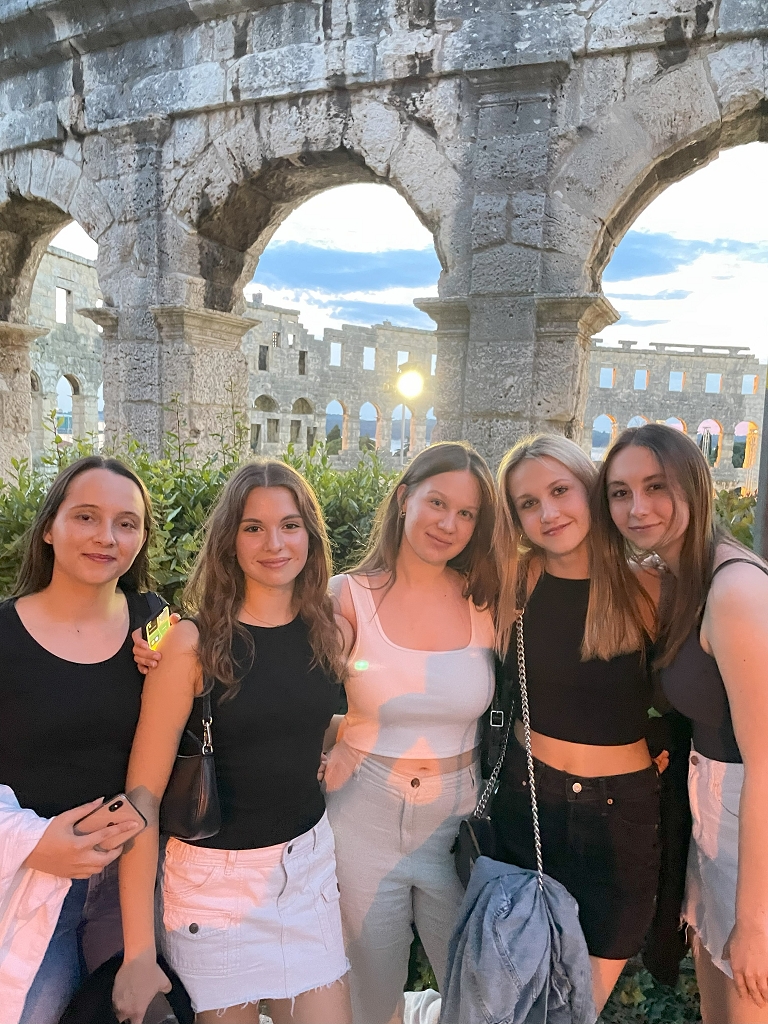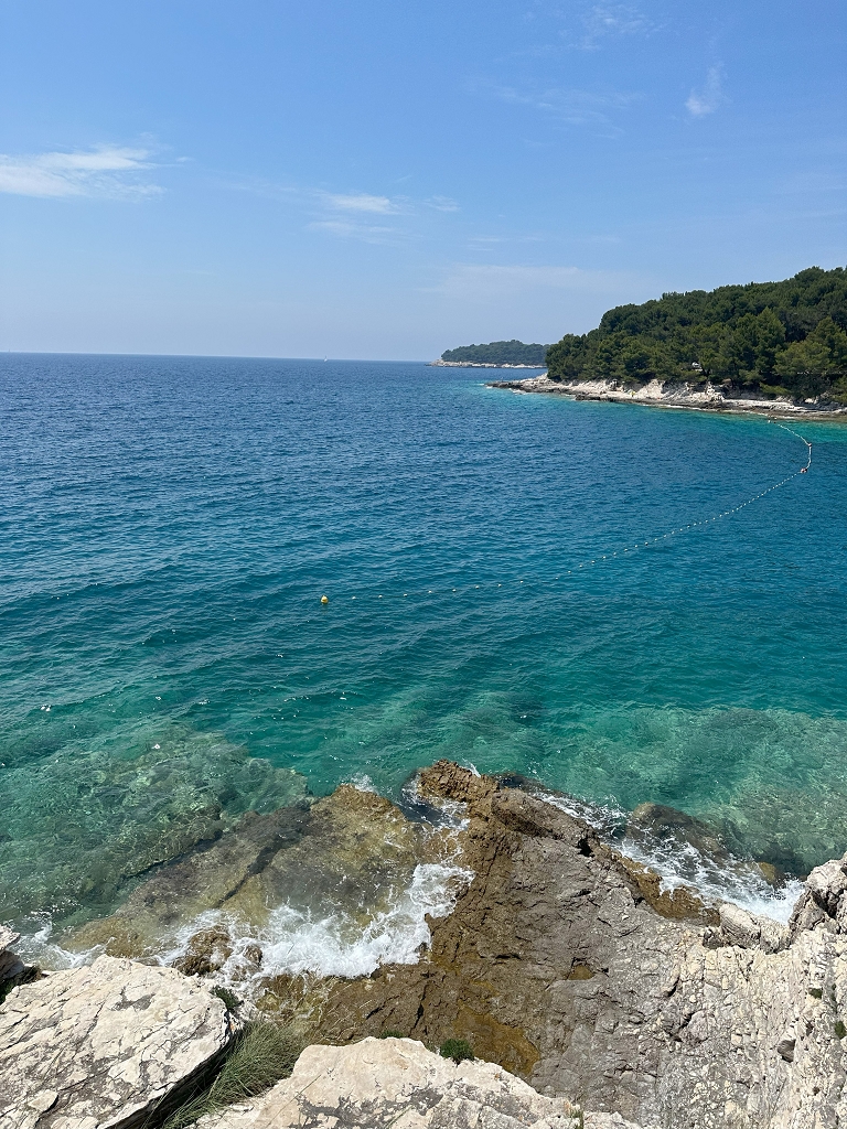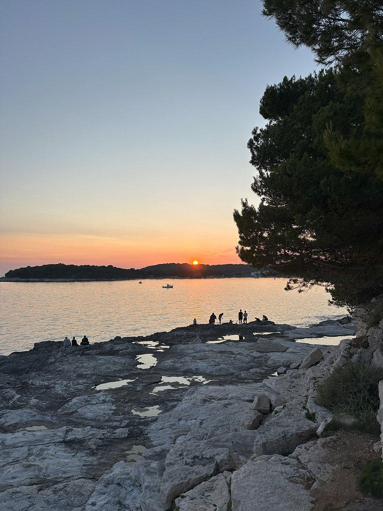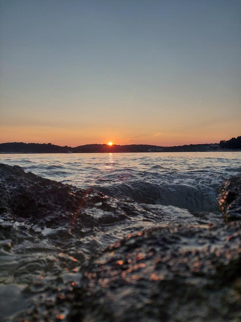 Hellwach ging die Reise am Freitag um sieben Uhr morgens los. Wir fuhren mit dem Bus fünf Stunden bis zu unserer Unterkunft, dem nah am Meer gelegenen Hotel Pula. Nachdem wir eingecheckt und die Zimmer bezogen hatten, machten wir uns direkt auf den Weg zur Meeresschule. Dort angekommen begrüßten uns herzlichst unsere Kursleiter Daniel und Mona. Um einen Sprung ins „kalte Wasser“ zu vermeiden, gaben sie uns zuerst eine theoretische Einführung in das Thema Meeresbiologie und Schnorcheln sowie die warmhaltenden und äußerst charmanten Neoprenanzüge. Danach ging es sofort ins Meer und wir durften uns beim Schnorcheln beweisen. Um den Hunger, der durch das Schnorcheln entstanden ist, zu stillen, machten wir uns wieder auf den Weg in unser Hotel und aßen dort zu Abend. Der erste Tag wurde mit einem romantischen Spaziergang durch die Stadt mit Eis und Getränken beendet.