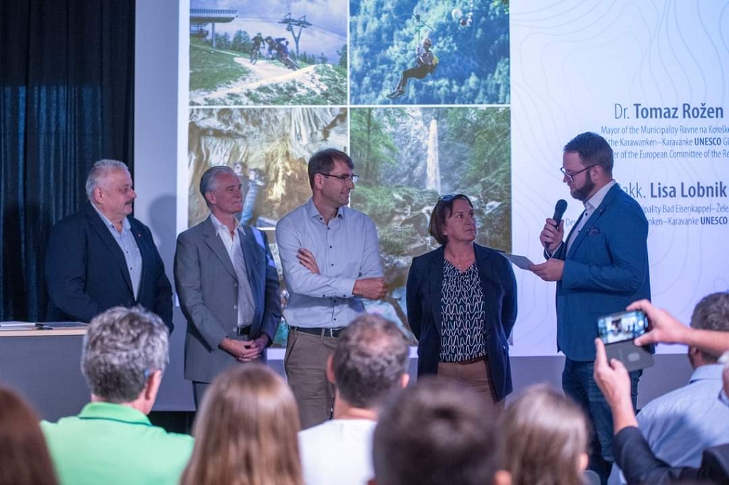 Nach der Begrüßung durch Tomaž Rožen, Bürgermeister von Ravne, Lisa Lobnik, Bürgermeisterin von Bad Eisenkappel, Gerald Hartmann, Direktor des Geoparks Karawanken/Karavanke und Christian Gsodam, Europäischer Ausschuss der Regionen, folgten Impulsreferate zum Thema.