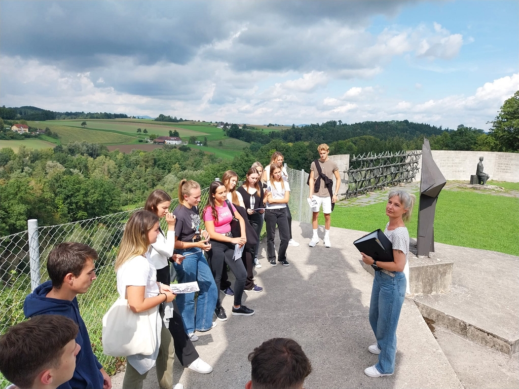 In Begleitung von Prof. Maltschnig und Prof. Striednig begaben sich die Schülerinnen und Schüler der zwei Maturaklassen an den Ort des ehemaligen Konzentrationslagers, welches während der Zeit des Zweiten Weltkriegs ein zentraler Ort der Verfolgung war. Sowohl das Hauptlager als auch die über 40 Nebenlager auf österreichischem Boden, zwei davon im heutigen Kärnten, stellen somit eines der dunkelsten Kapitel der Geschichte dar.
