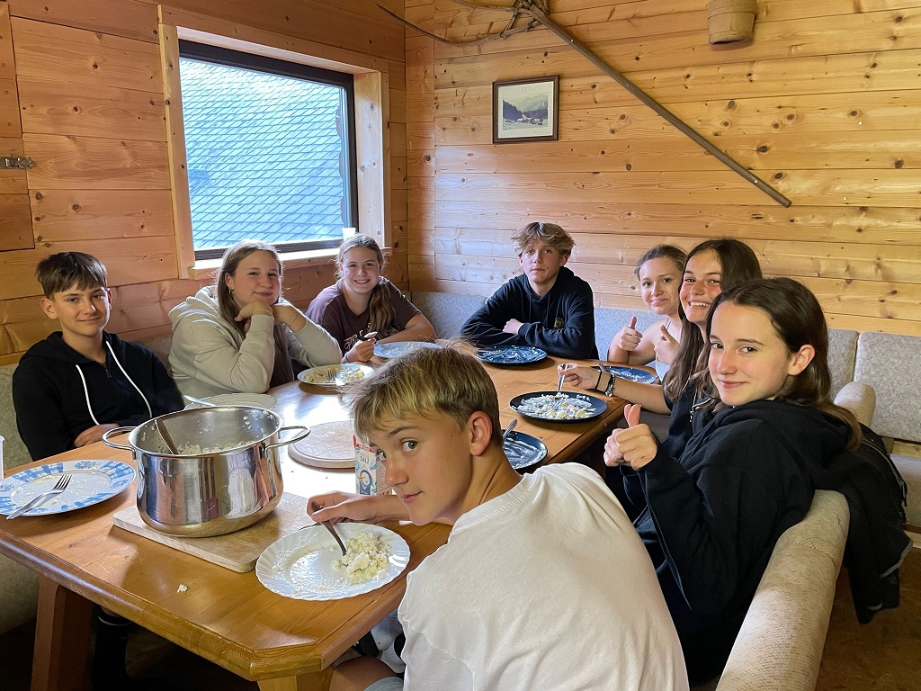 Durch Selbstversorgung konnten die von den Schülern selbst eingeteilten Kochgruppen im Team gemeinsam Speisen wie Pizza, Spaghetti und manchmal auch Gegrilltes zubereiten. Abends konnten die Schüler dann den Tag bei einem gemütlichen Lagerfeuer ausklingen lassen.