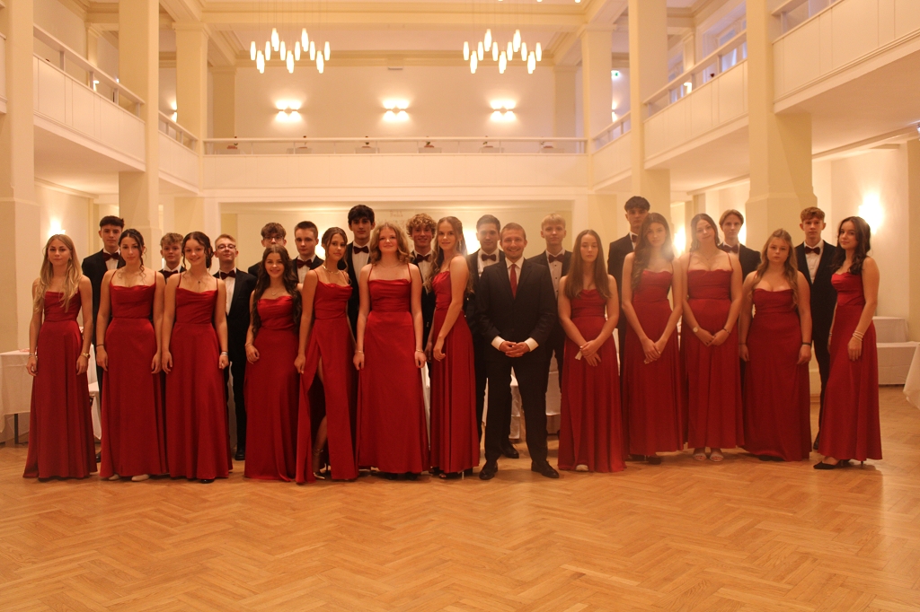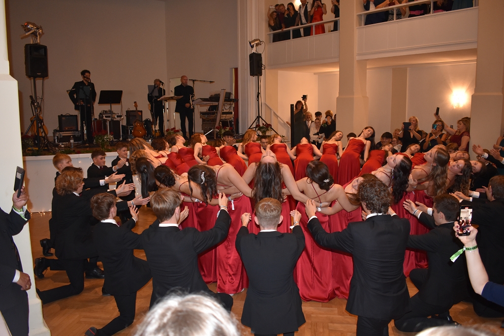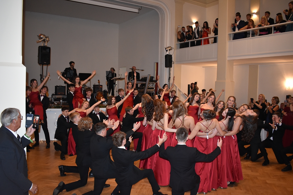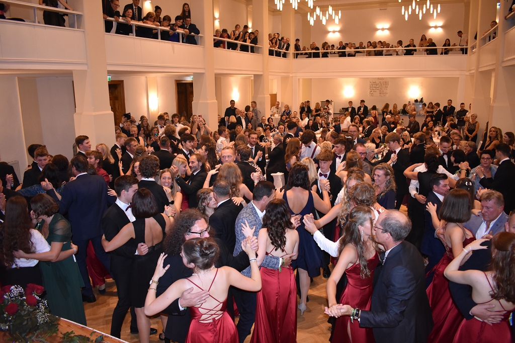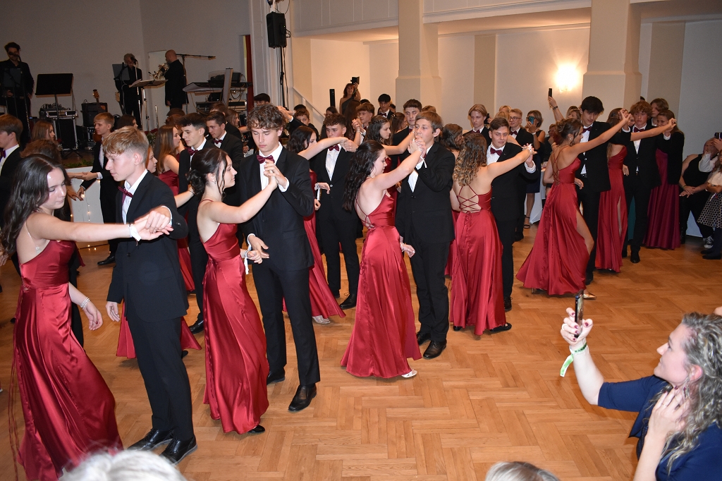 Am Samstag, dem 14.10.2023, fand das traditionelle Tanzkränzchen im in Rot gehaltenen, wunderschön dekorierten Festsaal (Blumenschmuck von „bunt und grün“) im Konvikt des Stiftsgymnasiums St. Paul statt.