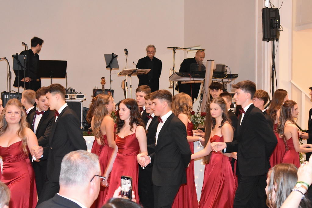 Stellvertretend für das Tanzkränzchenkomitee mit Hanna Griengl, Domenik Hochegger (beide 6a), Anna Friesacher und Julia Zarfl (beide 6b) begrüßten Anna Gutschi (6a) und Maximilian Rafling (6b) die Gäste. Prior Administrator Mag. P. Marian Kollmann und Direktorin Mag. Ines Leschirnig-Reichel eröffneten mit den Worten „Alles Walzer“ eine rauschende Ballnacht.