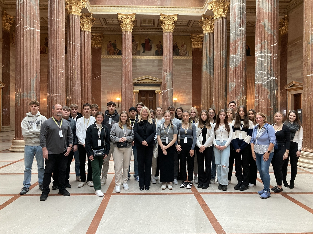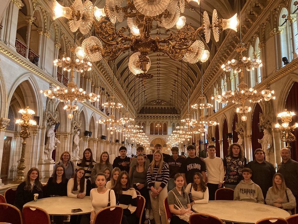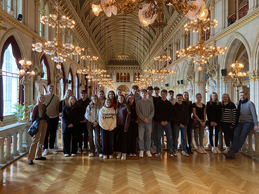 Die Spanische Hofreitschule bot auch ein sehr eindrucksvolles Erlebnis. Den Lipizzanern bei den Übungen zuzusehen, war ein Highlight. Weitere Programmpunkte der Wien-Woche waren eine Einkaufstour in der Mariahilferstraße und ein Kinobesuch, bei welchem zwischen den Filmen “The Marvels” und “A Haunting in Venice” gewählt werden konnte. Zusätzlich hatten alle Klassen das große Glück, das Musical ,,Rebecca“ im Raimund Theater anzusehen. Auch der Flughafen Wien-Schwechat war Teil des Programmes und wurde anhand einer Bustour besichtigt.