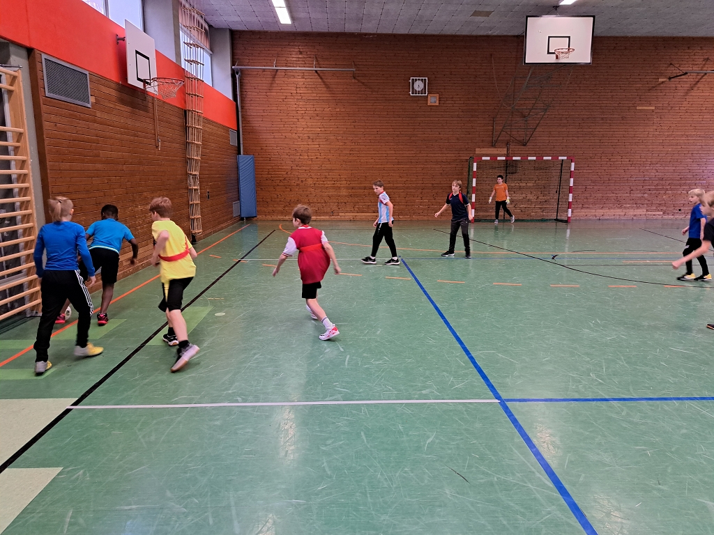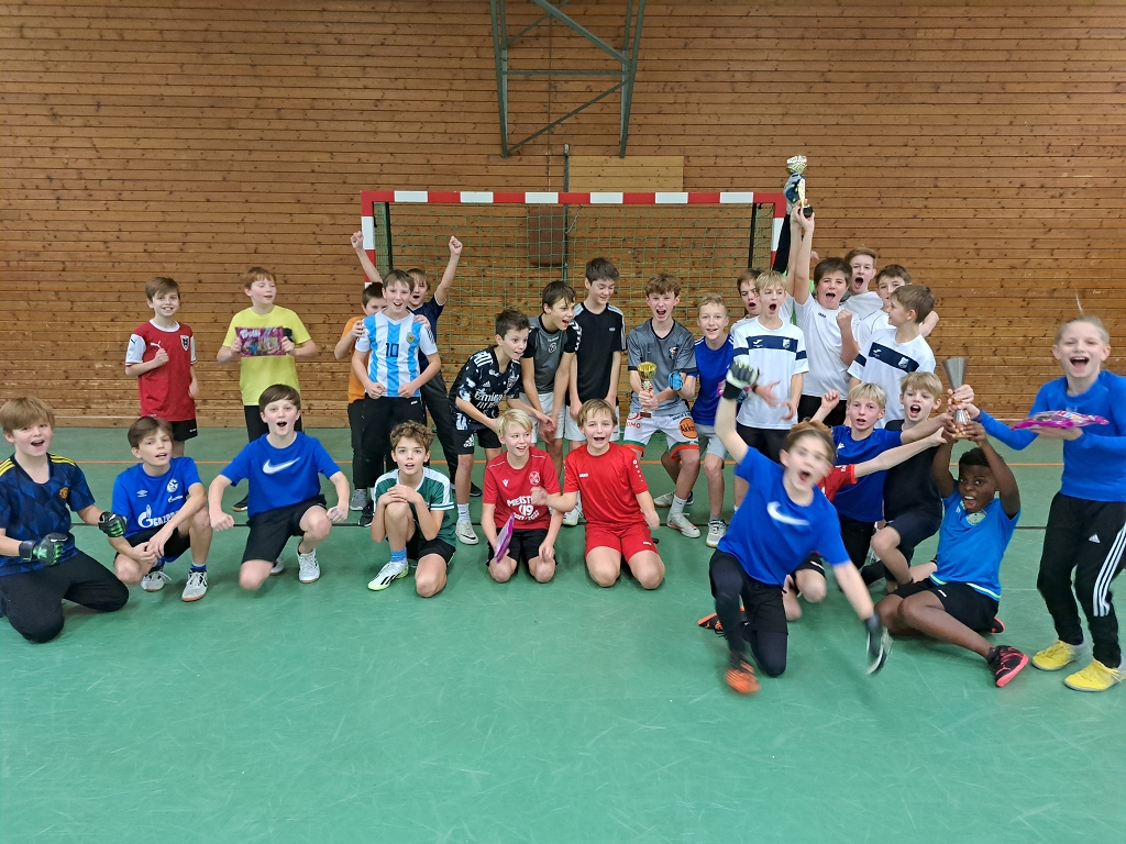 Alle Schüler:innen der 1. – 3. Klassen konnten sich für das Turnier anmelden. Insgesamt nahmen fünf Mannschaften daran teil und zeigten an diesem Nachmittag, was sie mit dem runden Leder auf dem Hallenparkett alles können. Nachdem sich jedes Team einmal gegenüberstand, krönte sich die Mannschaft der 3b-Klasse zum ungeschlagenen Sieger. Auch die Mannschaften der 1. und 2. Klassen zeigten großartige Leistungen und bewiesen, dass auch sie im nächsten Jahr um den Titel mitspielen werden.