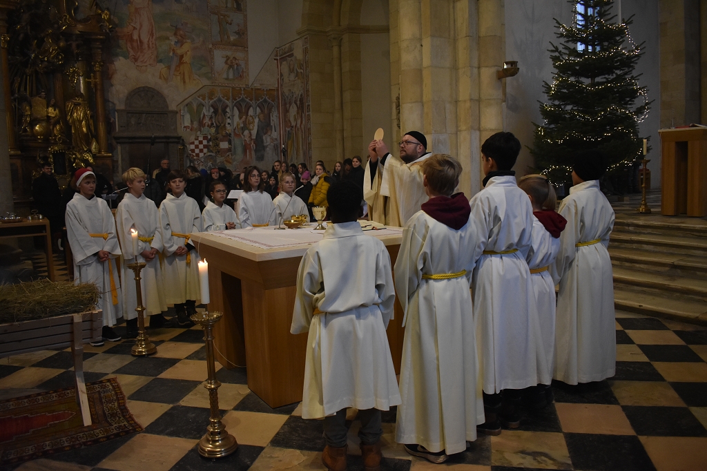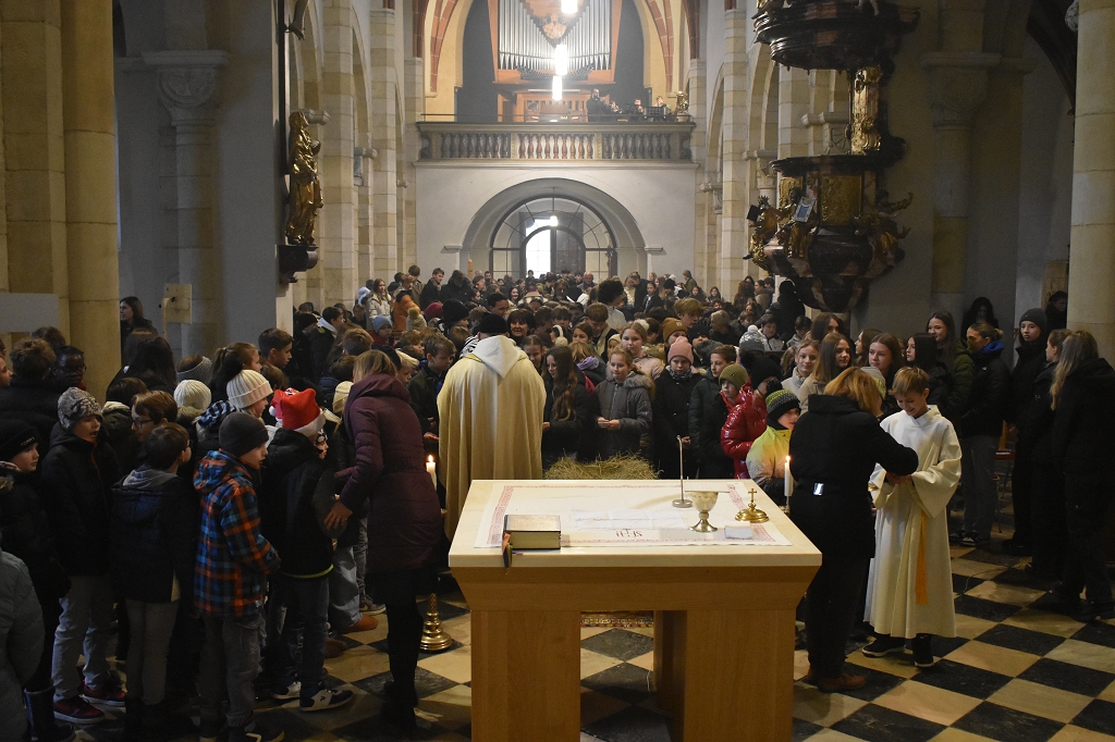 In gewohnter Weise wurde die Adventszeit im Stiftsgymnasium St. Paul mit dem gemeinsamen vorweihnachtlichen Gottesdienst ausbegleitet. Für die Feier danken wir unserem Priester, Administrator Professor Marian Kollmann. Am Ende des Gottesdienstes richtete Frau Direktor Ines Leschirnig-Reichel noch Grußworte an Kollegium und Schülerinnen und Schüler, in denen sie ermutigende Worte fand, den Blick auf das Schöne und Gute in einer Welt zu richten und mit Zuversicht in die Zukunft zu gehen.