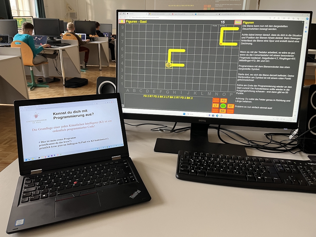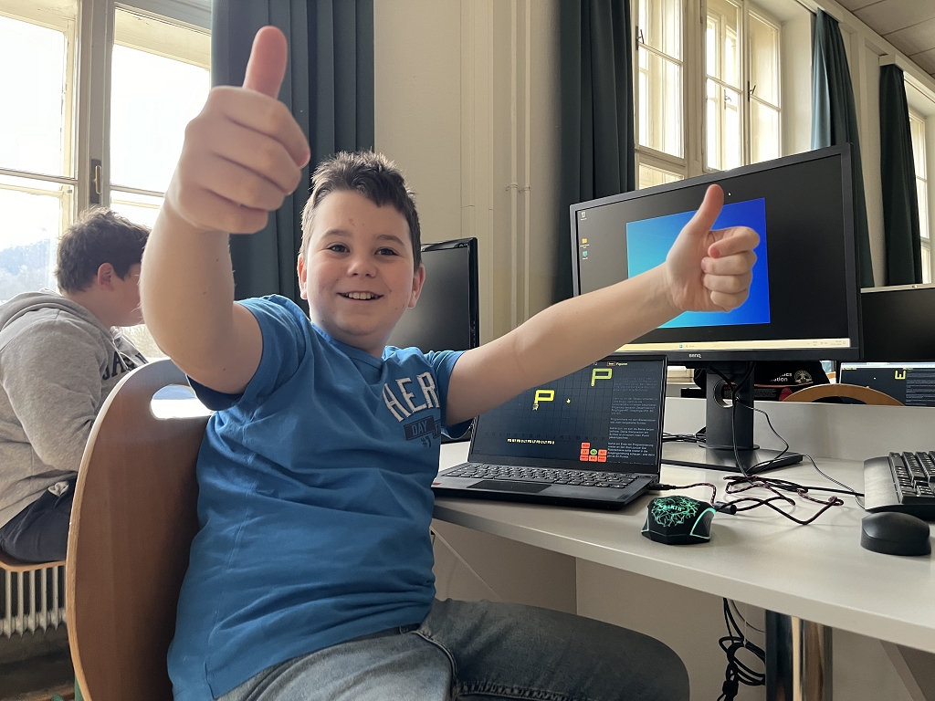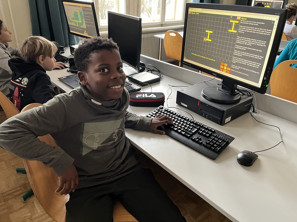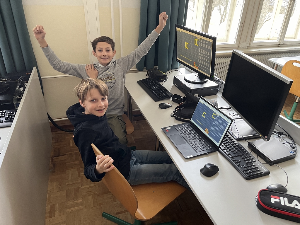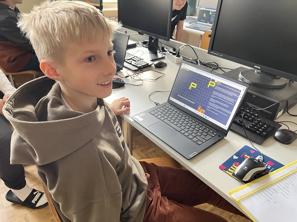Wie die Bilder zeigen, bereitet es den Schülerinnen und Schülern sehr viel Spaß, selbst einen „Code“ zu schreiben. Erfolge werden dabei auch sogleich gefeiert.