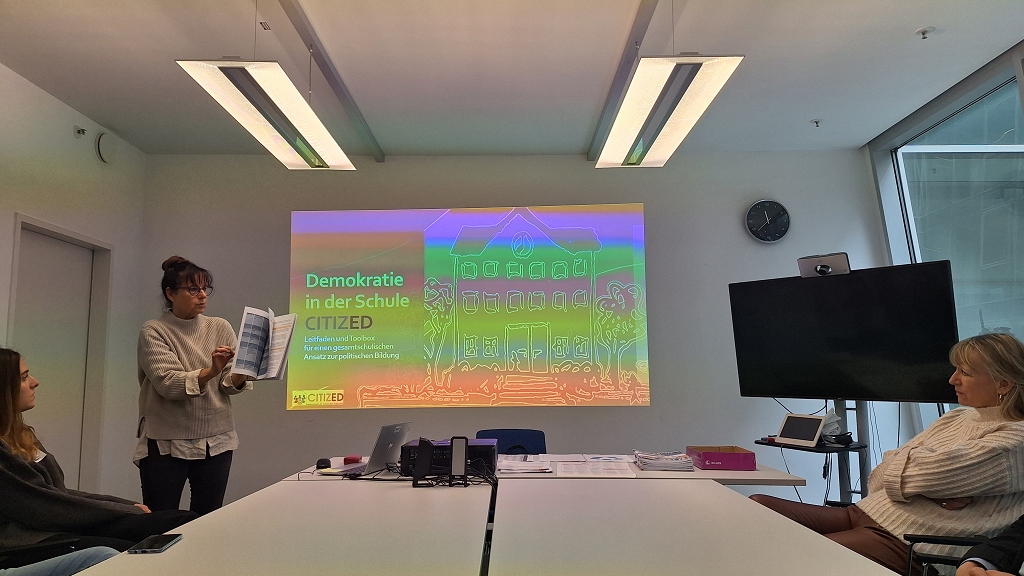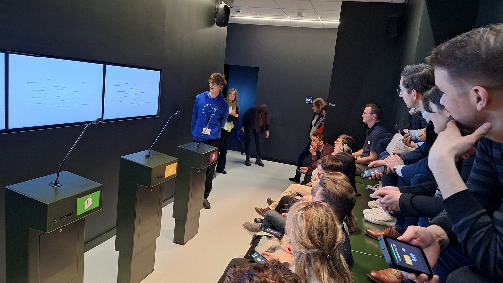 Im Anschluss tauschten die Lehrpersonen sich über Möglichkeiten aus, mehr Demokratie im Schulalltag zu leben, während die Schüler:innen in verschiedenen Workshops einen detaillierten Einblick in die EU vermittelt bekamen.