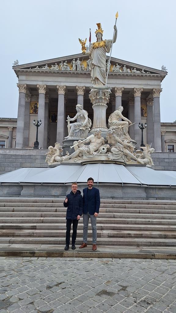 Früh aufstehen für die Demokratie hieß es am 8. März 2024. Junior-EU-Botschafter Domenik Hochegger (6aG) sowie die Senior-EU-Botschafter Christoph Brandstätter und Christian Taudes vertraten das Stiftsgymnasium St. Paul beim EU-Botschafterschulen-Seminar in Wien.