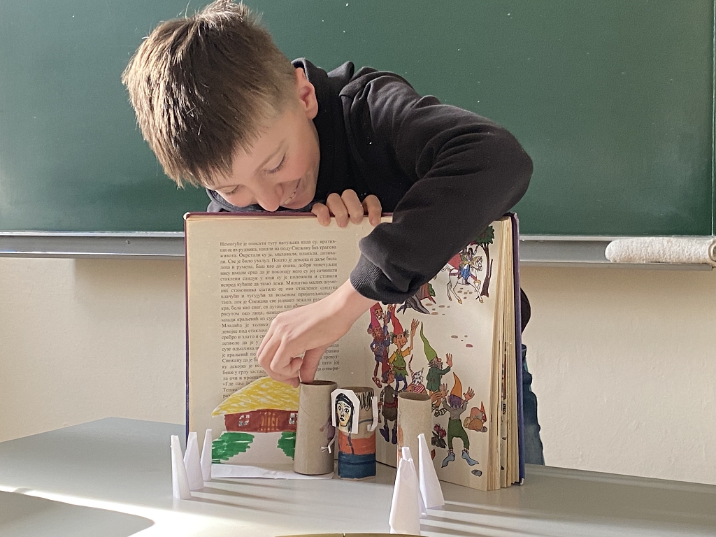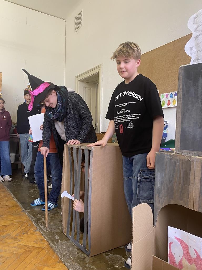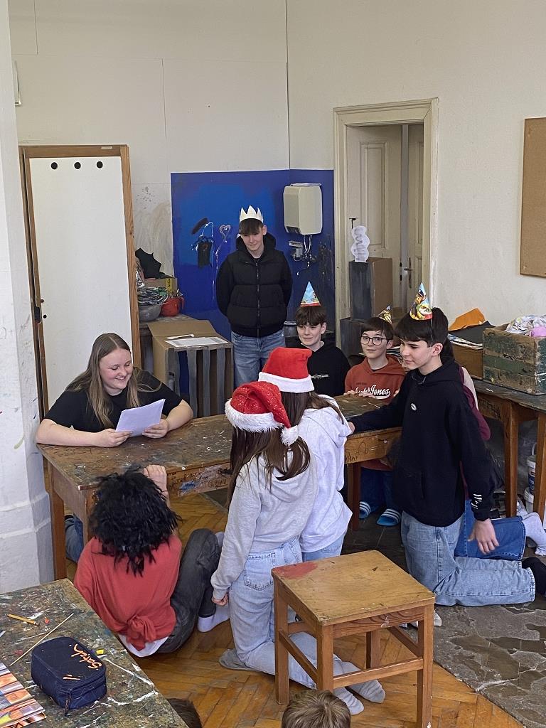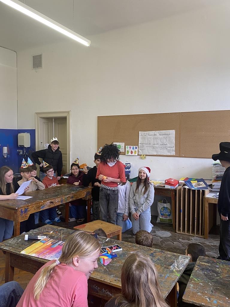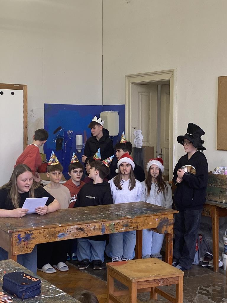 In der Unterstufe haben die Deutsch-Professor:innen der vierten und dritten Klassen individuelle Lesepakete für die Erst- und Zweitklassler zusammengestellt. Die dritten Klassen bereiteten für die ersten Klassen verschiedene Märchen vor. Es wurde aber nicht nur vorgelesen. Auch für das Auge war etwas dabei, denn die Schüler:innen integrierten das Vorlesen in Theaterstücke. Verschiedene Requisten und Kostüme wurden gebastelt und hergestellt. Eine Gruppe bereitete sogar ein Puppentheater für die Erstklässler vor. Mit viel Liebe zum Detail entstanden wunderbare Szenen, die die Schüler:innen der ersten Klassen begeisterten. Auch die „Großen“ hatten Freude daran, den Erstklässlern die Ergebnisse ihrer Arbeit zu präsentieren. Die vierten Klassen beschäftigen sich mit verschiedenen Balladen, die sie den Schüler:innen der zweiten Klassen näherbrachten. Einzelne Szenen wurden ebenso von den Viertklässlern nachgespielt, was das Verständnis des oft schwierigen Inhalts der Texte erleichtern sollte.