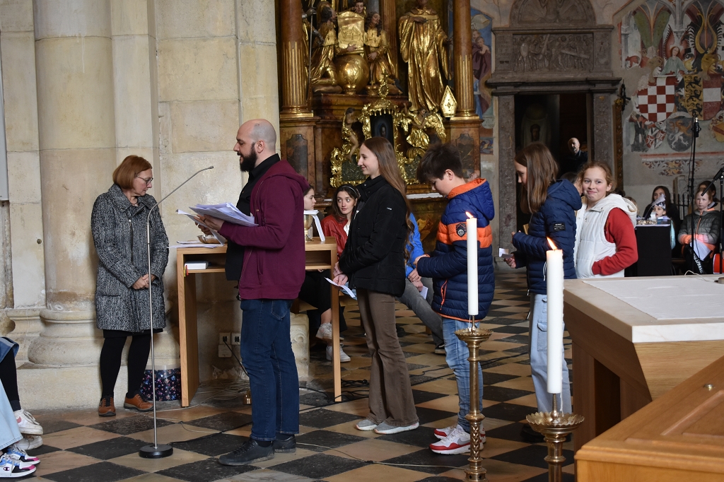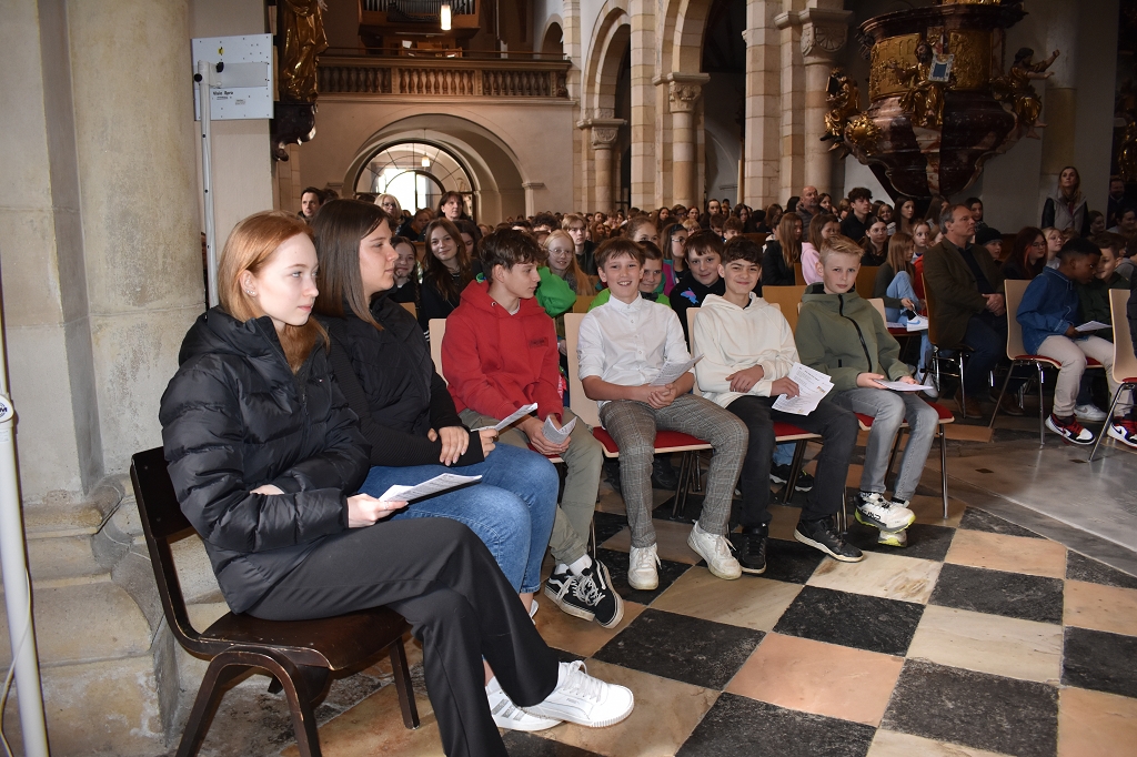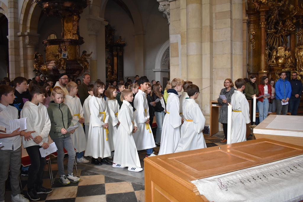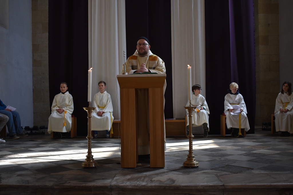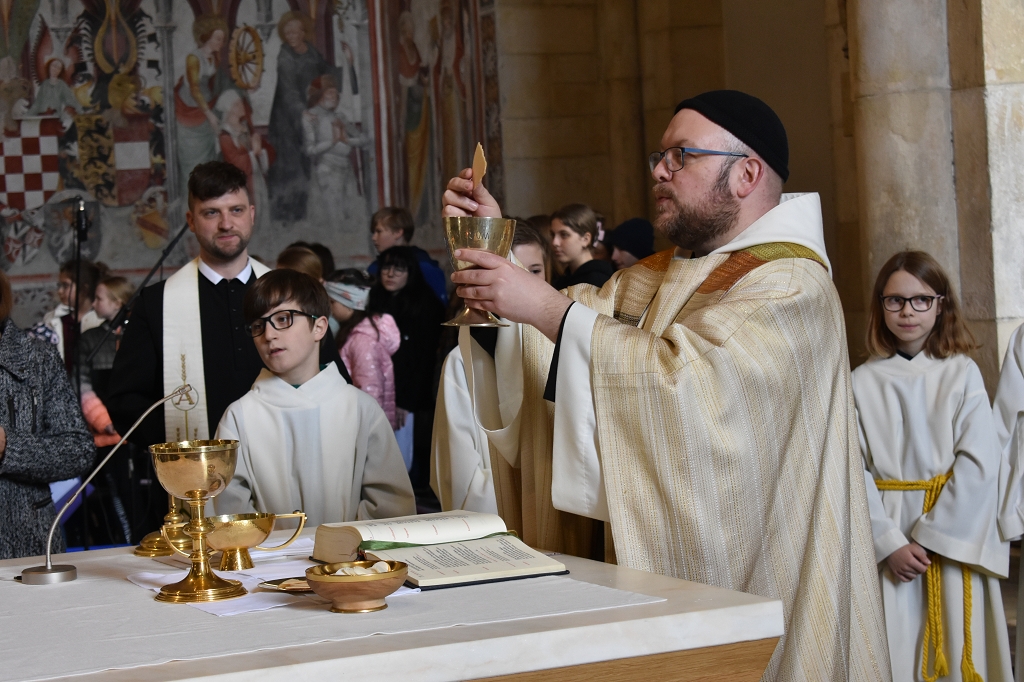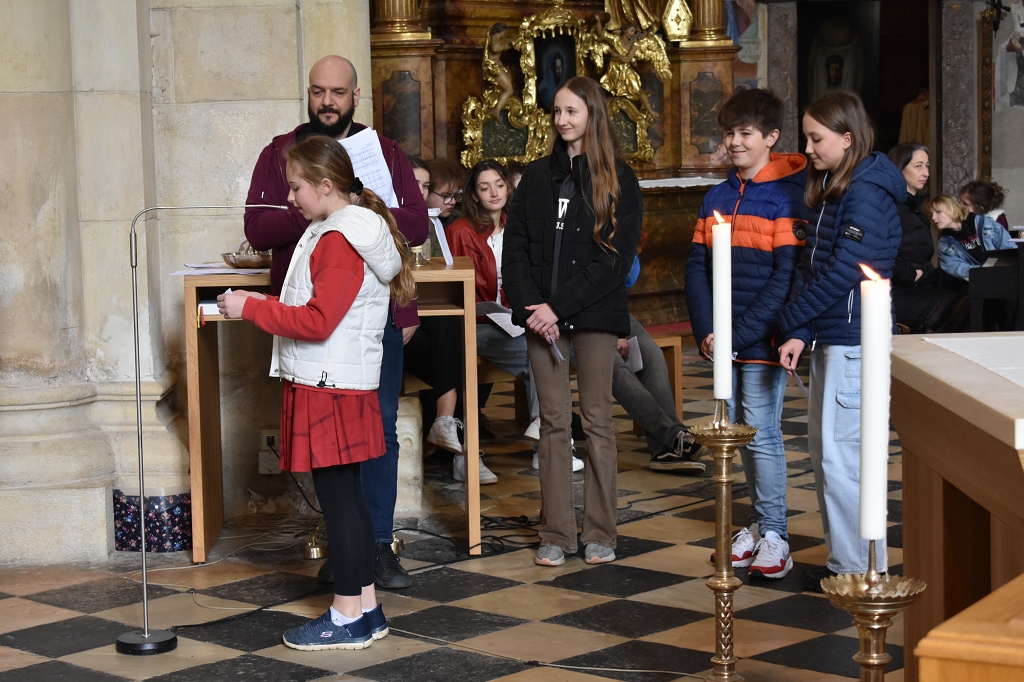 Auch dieses Jahr fand am 22.03.2024 die vorösterliche Messe vor dem Beginn der Osterferien statt. Zentrales Thema des Gottesdienstes war das Doppelgebot der Nächstenliebe (Mk 12, 29-31), welches sich als Leitgedanke durch die Fastenzeit gezogen hatte. Für die Feier der heiligen Messe danken wir Provisor Mag. Pater Marian Kollmann, der in einer lebhaften Predigt das Gebot der Nächstenliebe anschaulich erklärte und erläuterte, dass „Feinde“ zu lieben, auch heißen kann, seinen Nächsten nicht im nächsten Teich zu versenken – der Versuchung, den leichteren Weg zu gehen, zu widerstehen, da die Liebe es fordert, den Kelch zu nehmen, der einem von Gott gegeben wurde.