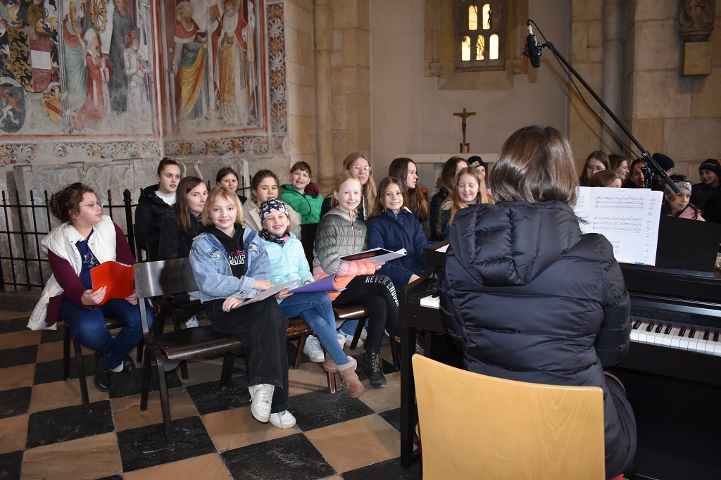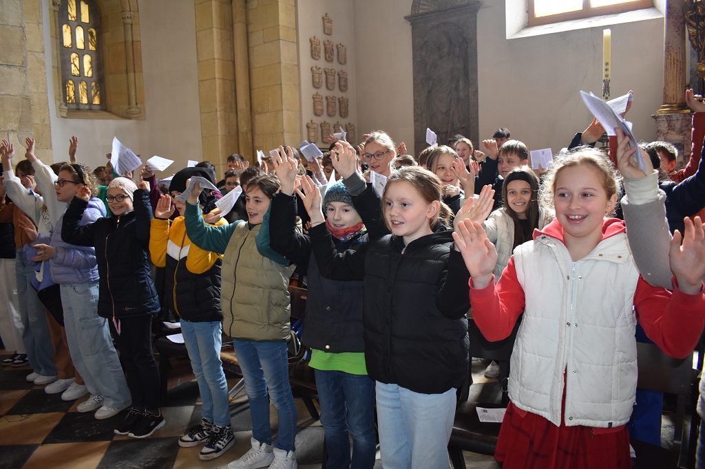 Danken für die Gestaltung der Messe möchten wir auch unserem Organisten Thomas Zdravja sowie Mag. Almut Dalton Wakonig und dem wachsenden Schulchor, welche in bewährter Eleganz und Schönheit die musikalischen Aspekte der Messe gestalteten und die Feier des Heiligen Wortes in eine vorösterliche Freudenfeier wandelten.