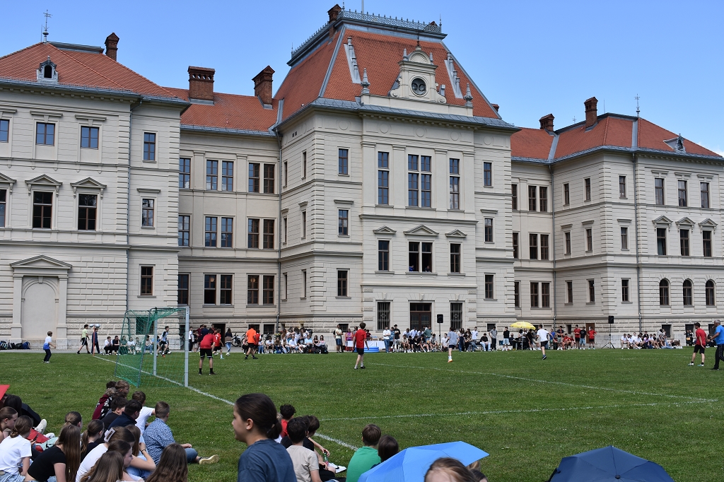 Zwischen der schriftlichen und der mündlichen Reifeprüfung stand für die Maturanten noch der sportliche Wettkampf am grünen Rasen mit den Lehrern am Programm.