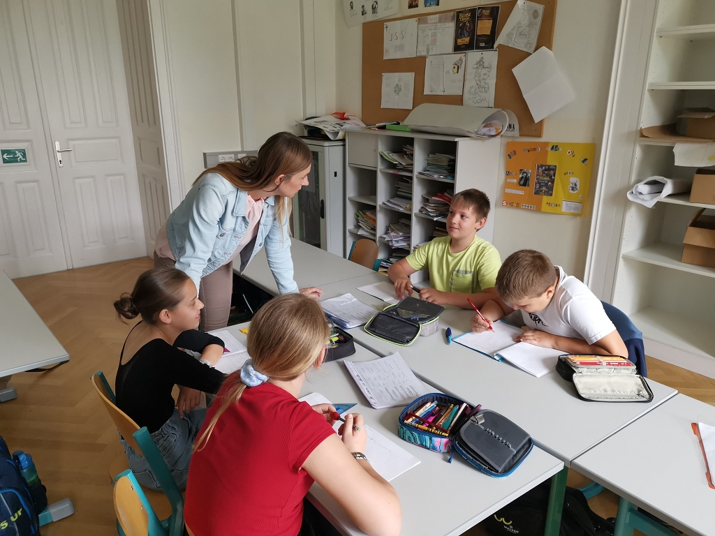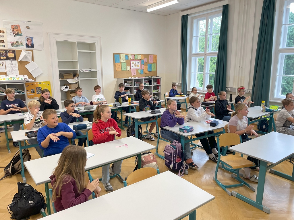 Auch zwischen Rhythmus und Mathematik besteht ein enger Zusammenhang, denn die Musik folgt einem regelmäßigen Puls, der in Takte unterteilt ist. Die Abfolge von leichten und schweren Schlägen bestimmt verschiedene Taktarten. Mithilfe eines popigen Musikstückes konnten die Schülerinnen und Schüler der 1B-Klasse verschiedene Rythmen in Bewegung umsetzen und somit die Noten- und Pausenwerte praktisch anwenden.