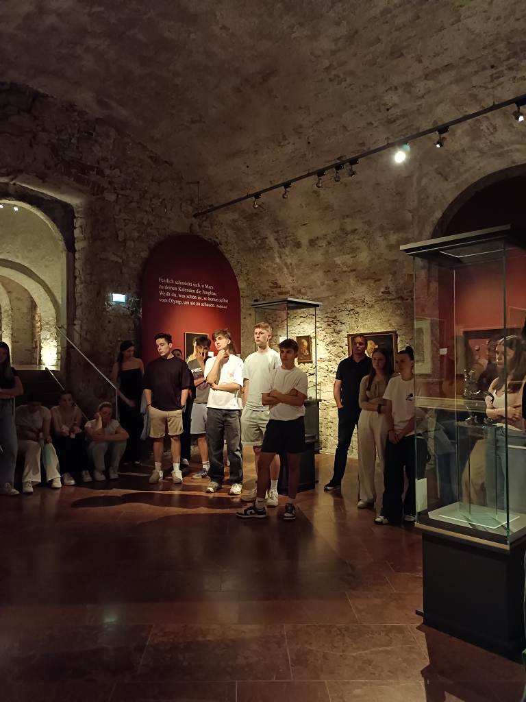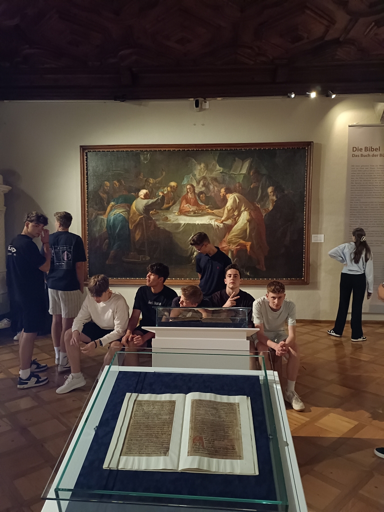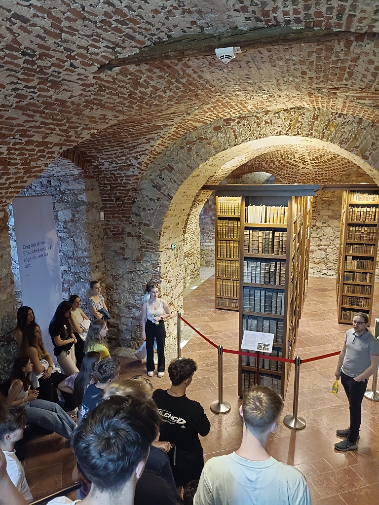 Nach einer kurzen Einführung und dem Besuch der Stiftsbibliothek wurde den Schülern die beeindruckende Ausstellung vorgestellt. Auch einige spannende Informationen zu den Schätzen des Stifts St. Paul wurden gegeben.