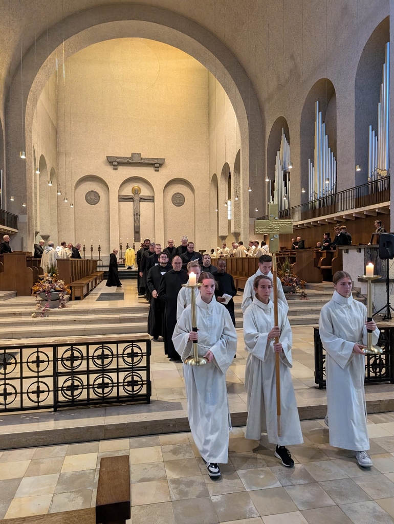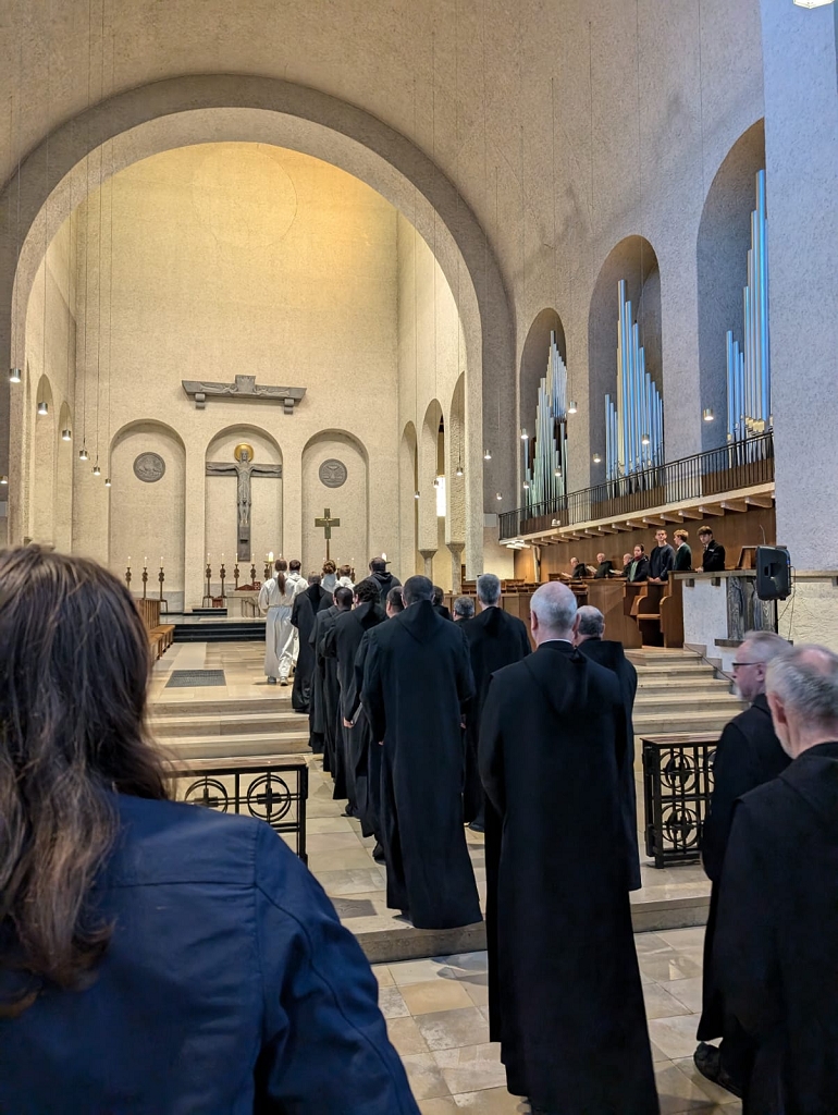 Diese Tage auf der Heimfahrt reflektierend, kann ich die Abschlussmesse hervorheben, die für alle Interessierten jederzeit auf YouTube verfügbar ist (Link zur Messe). Sie vereinte klassische Tradition mit jugendlichem Worship, wo sowohl Bußakt (Link) als auch Predigt (Link) durch kurze Poetry Slams eingeleitet und vertieft wurden. Ein freies Credo nach der Melodie des Hits „Wellerman“ ergänzte Gesänge der Gregorianik aus dem 11. Jahrhundert. Abt Michael Reepen OSB sandte die Teilnehmerinnen in seiner Predigt als Boten der Liebe und Hoffnung des Reiches Gottes aus, unabhängig von Nationalität, Sexualität und Interessen, und ermutigte sie, die benediktinische Regel, welche unsere Schulen und unser Handeln prägt, zu werden und zu sein.
