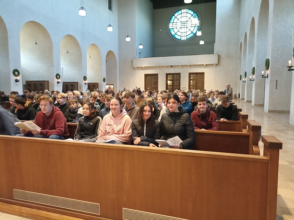 Dieser Einladung folgte die Klasse 6B mit ihren Lehrern Prof. Andreas Oberbucher und Prof. Florian Schneider, die sich bereits am frühen Morgen in St. Paul versammelte, um die achtstündige Zugfahrt nach Münsterschwarzach anzutreten.