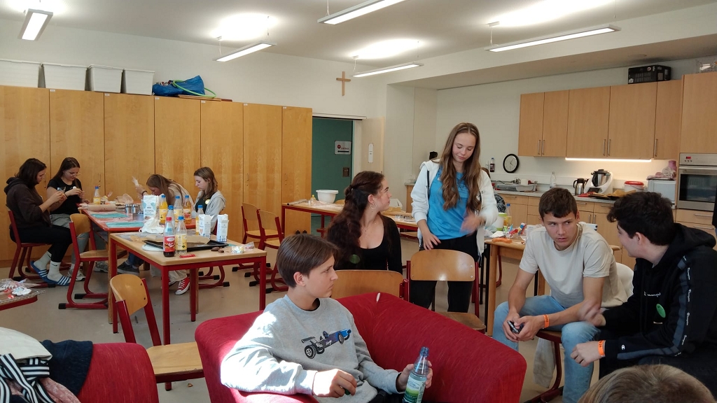 Auch das Angebot an Workshops für alle Teilnehmer:innen war in Umfang und Qualität unerwartet umfassend. Es reichte von einer Einführung in die Gregorianik (Prof. Schneider) über geführte Wanderungen in die umliegenden Ortschaften, die mit dem Kloster verbunden sind (Prof. Oberbucher), bis hin zu den Lieblingsbeschäftigungen der Schülerinnen und Schüler, zu denen unter anderem Schmieden, Lebkuchenherzen backen, Improvisationstheater und Kerzen verzieren gehörten.