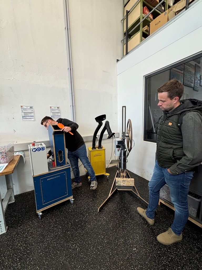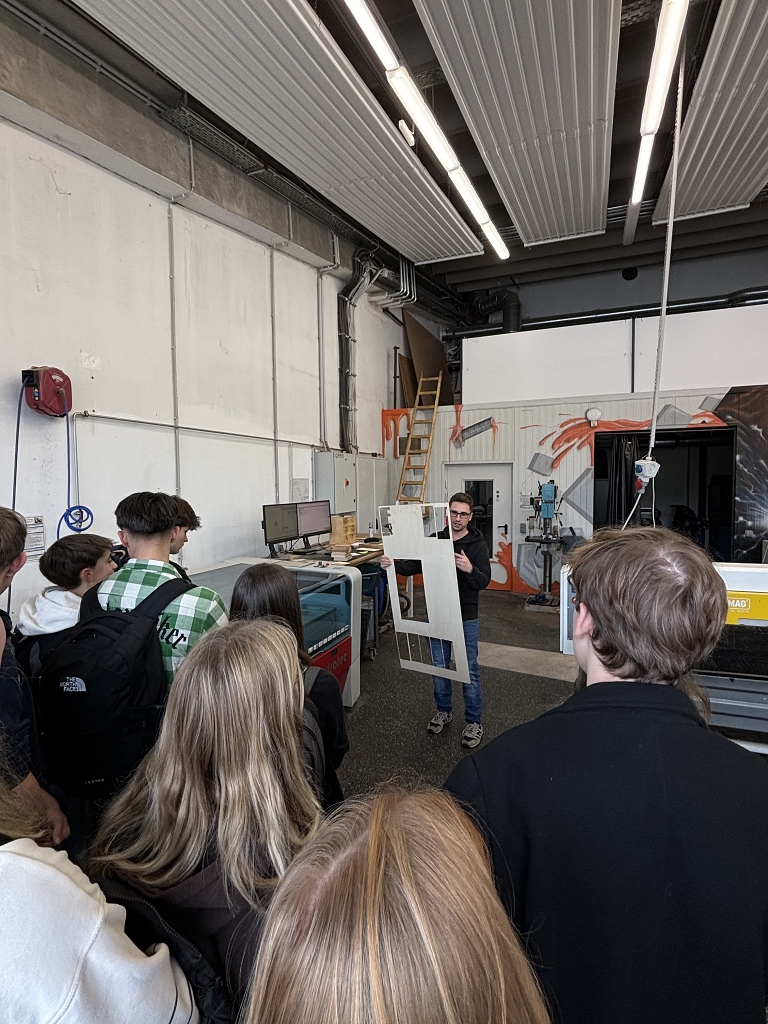 Diese Werkstatt bietet kreativen Köpfen die Möglichkeit, eigene Projekte zu verwirklichen, Ideen zu entwickeln und technische sowie künstlerische Fähigkeiten auszubauen. Die Führung durch die Werkstatt wurde von Herrn Thomas Moser, einem Mitarbeiter des Makerspace-Teams, geleitet. Er führte die Schülerinnen und Schüler durch die verschiedenen Bereiche der Werkstatt und gab ihnen Einblicke in die vielfältigen Möglichkeiten des Makerspace. Während Herr Moser die Gruppe führte, erklärte er die unterschiedlichen Arbeitsbereiche und deren Funktionen.