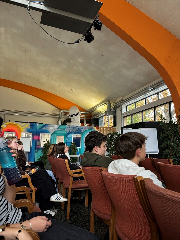 Im Bereich der Softwareentwicklung konnten die Schülerinnen und Schüler beobachten, wie digitale Projekte programmiert und umgesetzt werden können. Ein anderer Teil der Werkstatt wird für künstlerische Projekte genutzt, wobei auch der zur Verfügung gestellte 3D-Drucker zum Einsatz kommt. Als Beispiel stellte Herr Moser ein Bambusfahrrad vor – ein nachhaltiges und kreatives Projekt, das die Möglichkeiten der Werkstatt eindrucksvoll zeigt. Das Bambusfahrrad ist nur eines von vielen Beispielen, wie kreative Ideen dort in die Realität umgesetzt werden können.