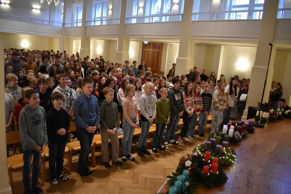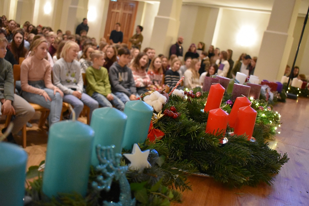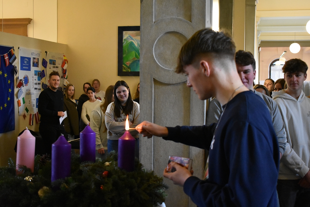 Gleich der Weihnacht, die alle Jahre wieder kehrt, so war auch an unserer Schule zu Beginn des Advents die Zeit, dass die traditionelle Adventkranzsegnungen der Unterstufen und Oberstufen im Festsaal des Konvikts und der Aula des Gymnasiums stattfanden. Hierfür danken wir unserem Schulseelsorger Dechant Kons. Rat P. Dr. Gerfried Sitar OSB der für uns diese Feiern leitete und die Adventkränze der Schule so wie der Klassen segnete. Seine Predigten fassten die Bedeutung des Advents für die Schüler und Schülerinnen in eindrucksvolle Worte, und das Licht unserer Kränze wird uns, Woche für Woche mehr, auf unserem Weg der Erwartung begleiten.