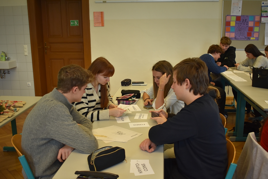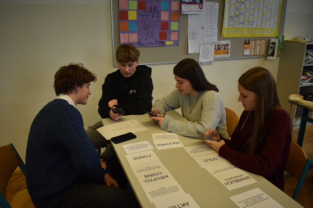 Abschließend wurde das Thema Geldanlage behandelt, wobei verschiedene Anlageformen wie Aktien, Fonds und Kryptowährungen vorgestellt wurden. Die Schülerinnen und Schüler erfuhren, wie sie je nach ihren Zielen und Möglichkeiten sinnvoll in Geld investieren können.