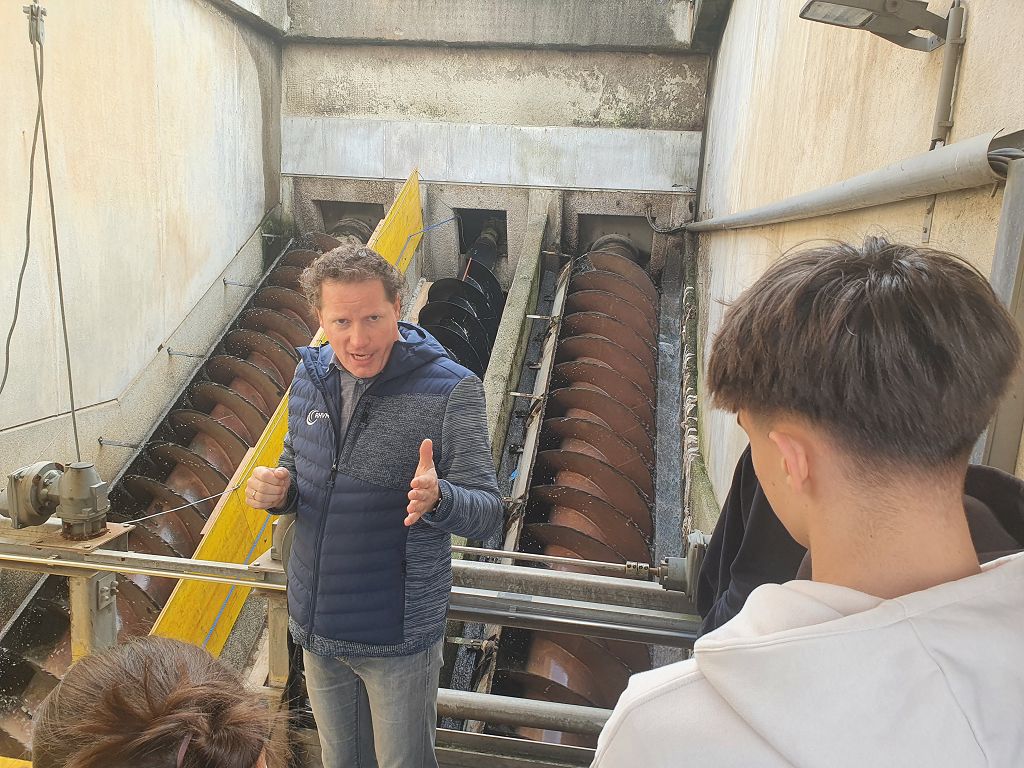 Der Geschäftsführer, Herr DI Markus Kleinszig, erklärte ihnen den langen Weg, den das verschmutzte Wasser zurücklegt, bevor es wieder in die Lavant eingeleitet wird. Kurz zusammengefasst gelangt es über den Hauptsammelkanal in die erste Kläranlage, wo es zunächst von größeren Partikeln und Fetten befreit wird und dann in ein Reservoir gelangt, in dem Bakterien, Einzeller und Algen ihre Arbeit verrichten - die Belebungsbecken. Nach einer Nachklärstufe wird es dann aus dem Werksgelände in die Lavant geleitet.