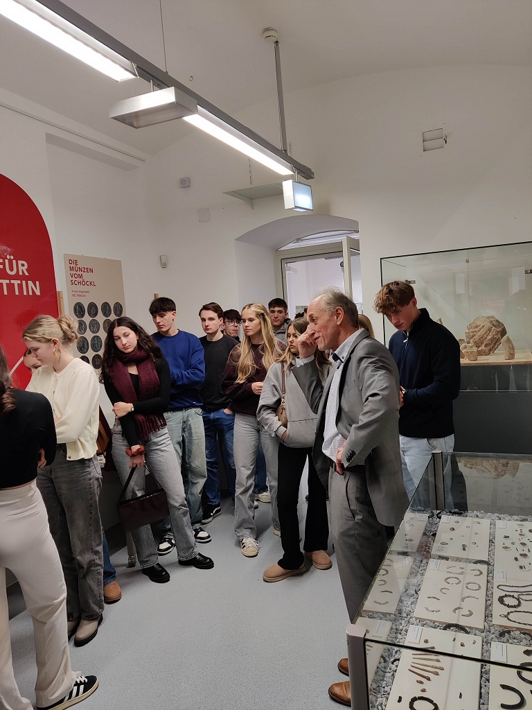 Unser Nachmittag in Graz begann mit einer spannenden Führung durch das Universitätsmuseum. Mag. Franz Stangl leitete uns durch die Sonderausstellung „Der Schöckl - Heiliger Berg der Römer“. Die Ausstellung bot faszinierende Einblicke in die römische Geschichte der Region. Mag. Stangl erklärte detailliert die archäologischen Funde und die Bedeutung des Schöckls als Kultstätte, was bei allen TeilnehmerInnen großes Interesse weckte.