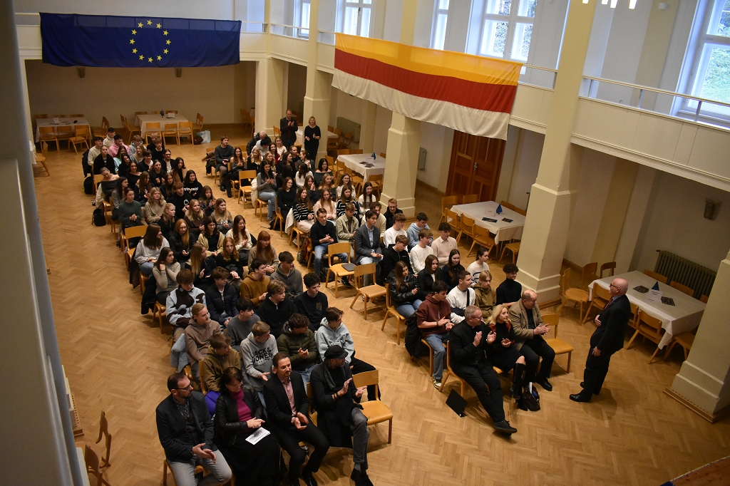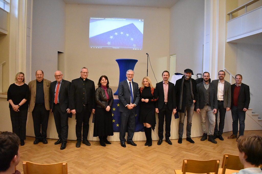 Im Zuge der EU-Zukunftsgespräche fand am Freitag, den 6. Dezember 2024, ein Dialog zum Thema „Europäische Werte gestern und heute: ein Blick in die EU-Charta der Grundrechte“ am Stiftsgymnasium St. Paul statt. Für die Organisation vor Ort zeigten sich die EU-Seniorbotschafter der Schule, Mag. Christoph Brandstätter, Mag. Bernd Locker, Mag. Christian Taudes und Mag. Rosemarie Pollanz, verantwortlich.
