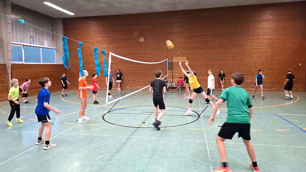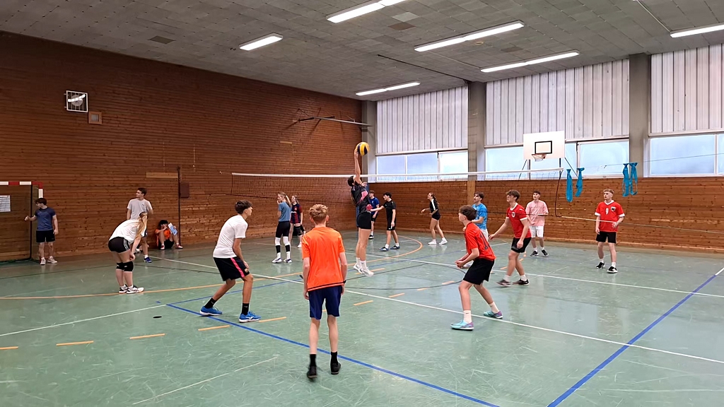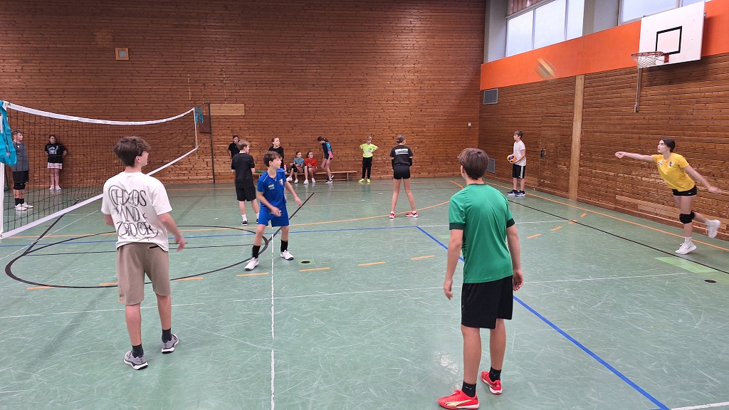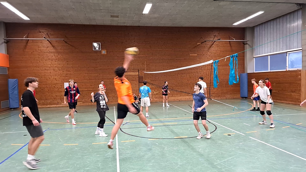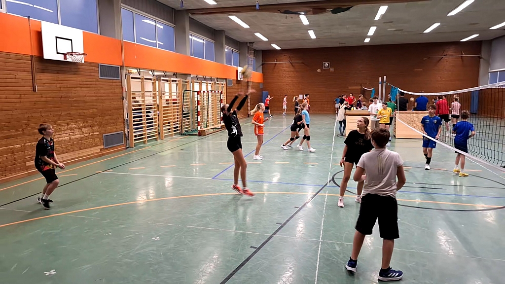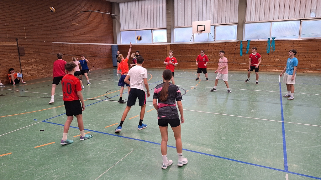 Schülerinnen und Schüler verschiedener Jahrgangsstufen bildeten gemischte Teams, um sich in spannenden Spielen zu messen. Insgesamt spielten 5 Unterstufen- und 5 Oberstufenmannschaften im Round - Robin - Modus gegeneinander, so dass jede Mannschaft gegen jede spielte. Die Spiele waren zum Teil sehr spannend, hart umkämpft, aber immer sehr fair. Besonders erfreulich war, dass vier Mannschaften mehr als im Vorjahr teilnahmen.