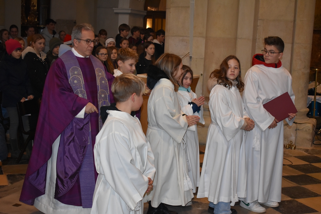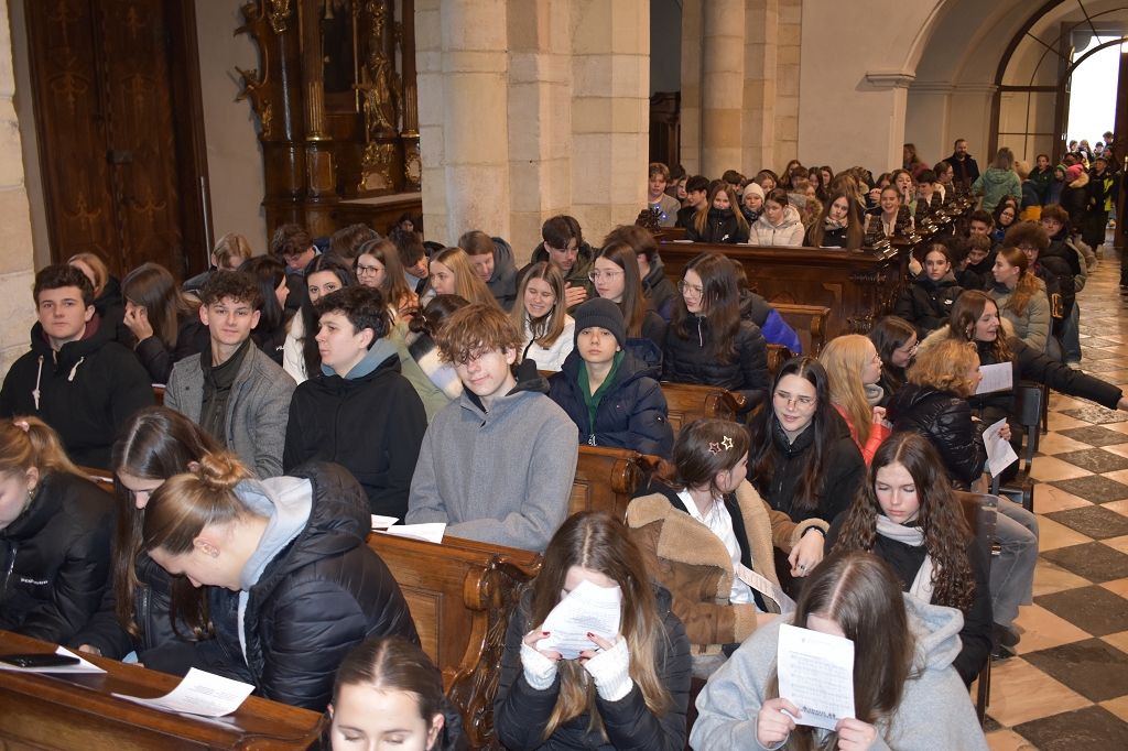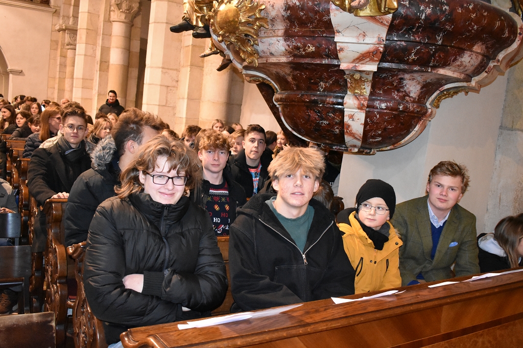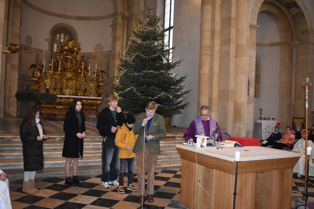 Es ist immer wieder eine große Freude für alle Schülerinnen und Schüler sowie für das Kollegium, in den Weihnachtsferien zu sein. Und noch mehr Freude macht uns die gemeinsame Weihnachtsmesse der Schule mit unserem Priester des Stifts, Pater Gerfried Sitar. Wir danken ihm von Herzen für die gemeinsame Feier und dafür, dass er sich beim Schauspiel der Theatergruppe, einer "inneren Herbergsuche", die sich der Frage widmete, wo man denn Jesu heute findet, für die priesterliche Sprechrolle anbot und gemeinsam mit den Schülerinnen und Schülern der Gruppe der gesamten Schule lebendig erklärte, was es heißt, Jesu im eigenen Leben zu suchen und zu finden. Er erklärte der versammelten Schulgemeinschaft, was es im Leben zu erkennen gilt, welche Sichtweise, welche "Lebensbrille" man braucht, um bei dieser Suche erfolgreich zu sein, und welche Bedeutung Weihnachten hat.