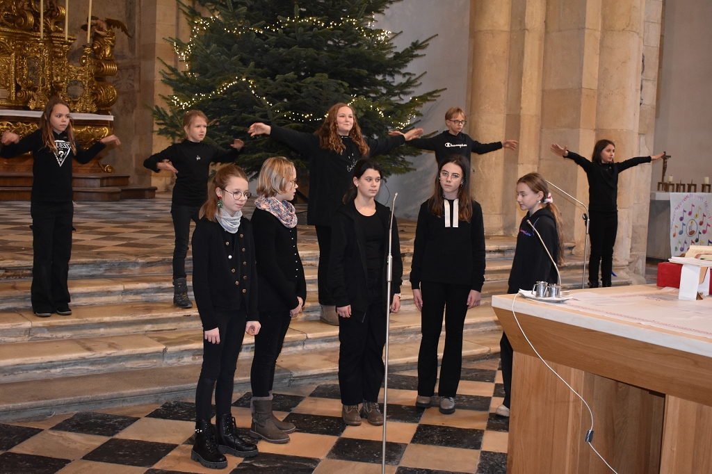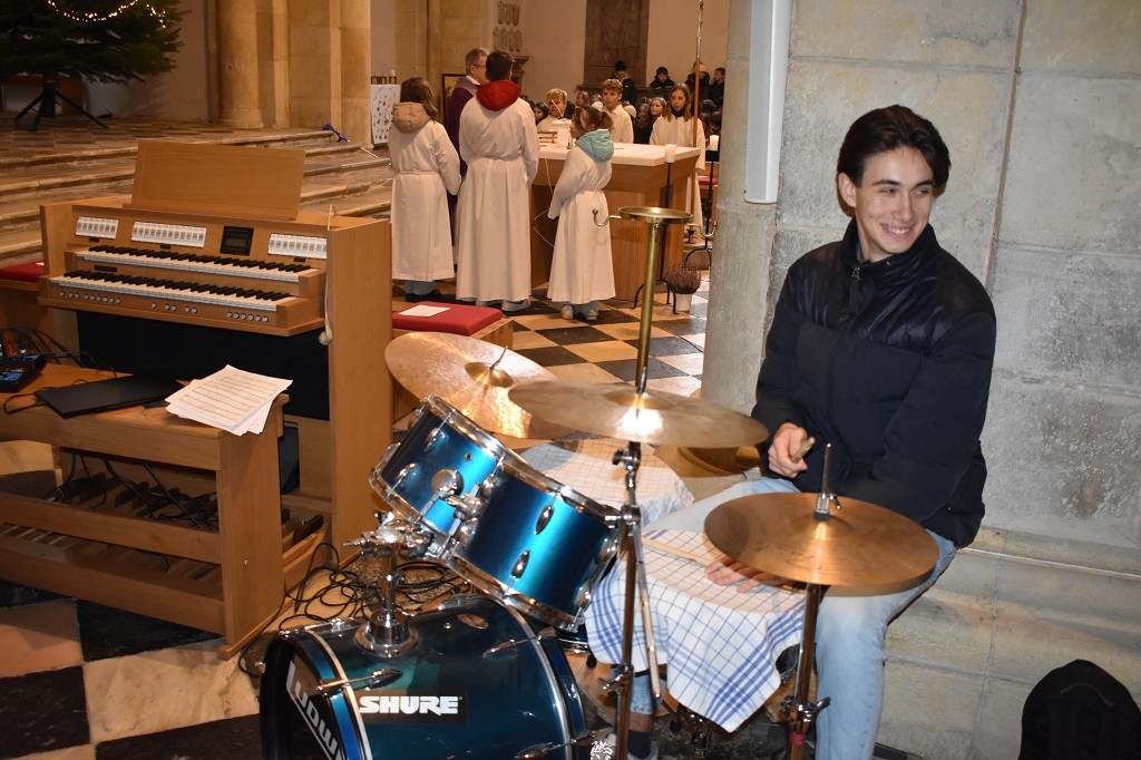 Ein Schulgottesdienst wie der unsere und eine Schulgemeinschaft wie die unsere brauchen natürlich eine Vielzahl an helfenden Händen und Personen, die einem diese Möglichkeiten geben. Wir danken Frau Direktor Leschirnig-Reichel von Herzen für die Zeit, die sie uns gewährt hat, gemeinsam zu feiern (und dafür auch vor der Messe entsprechend aufzubauen und zu proben!), sowie Prof. Thomas Zdravja und seinen Bläsern für den Einsatz seines Bläserensembles und das Neugeschriebene St. Pauler Halleluja, das seine Uraufführung erfuhr. Ganz besonders danken wir den Professoren Manuel Schwandt und Justus Eberl-Seeger, die als Leiter der Chor- und Theatergruppen den Gottesdienst mit ihrer Hingabe und ihrem Engagement zu einem freudvollen Erlebnis gemacht haben. Ein ganz besonderer Dank geht an Nicolas Polesnig (7b), der diesmal den Chor mit seinem talentierten Schlagzeugbegleit unglaublich bereichert hat.