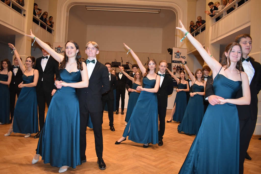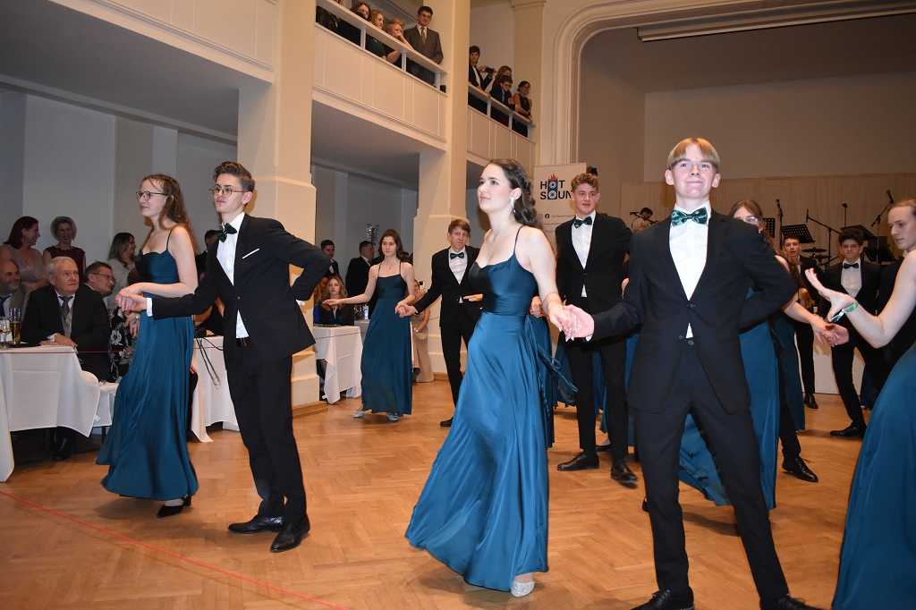 Der Höhepunkt des Abends war die Darbietung der Schülerinnen und Schüler, die mit einer atemberaubenden Polonaise den ersten Tanz des Abends präsentierten. Diese wurde gefolgt von einem eleganten Walzer, bei dem das Publikum die Hingabe und die Präzision der Tänzerinnen und Tänzer bewundern konnte. Der Schwung des Abends setzte sich mit einem flotten Discofox fort, der für eine ausgelassene Stimmung sorgte. Die jungen Tänzerinnen und Tänzer, die in eleganter Kleidung und mit viel Begeisterung ihr Können zeigten, ernteten dafür kräftigen Applaus.