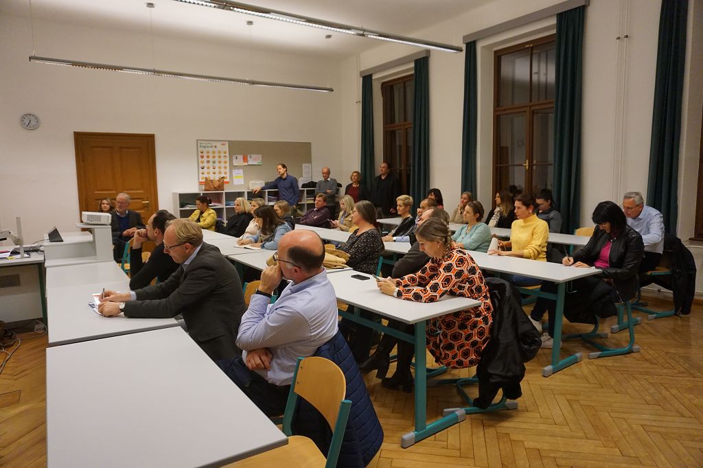 Im Plenum wurden von den Eltern eifrig Fragen gestellt und, nachdem der offizielle Part abgeschlossen war, hatten sie noch die Möglichkeit, mit einzelnen Lehrpersonen in eigens zugeteilten Räumen vertiefende Gespräche zu führen, Fragen zu stellen und Anliegen zu äußern, um etwaige Unklarheiten zu beseitigen.