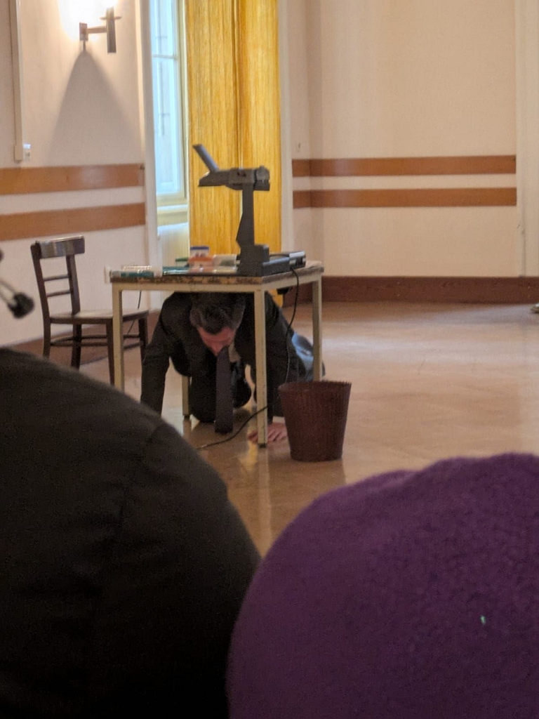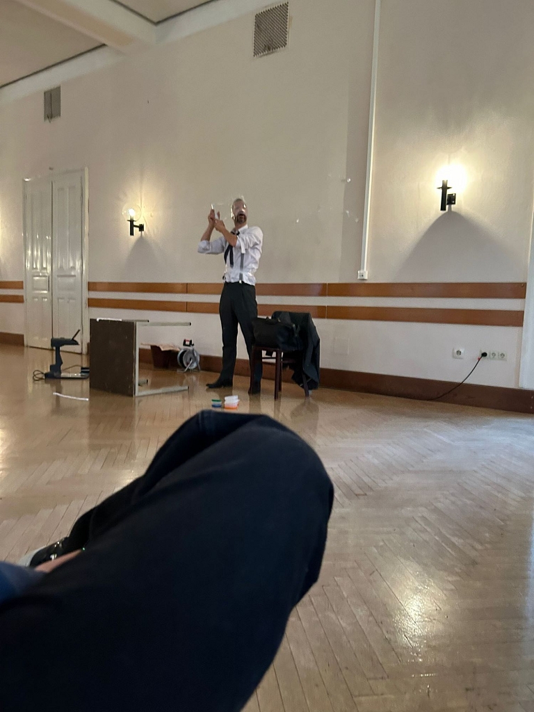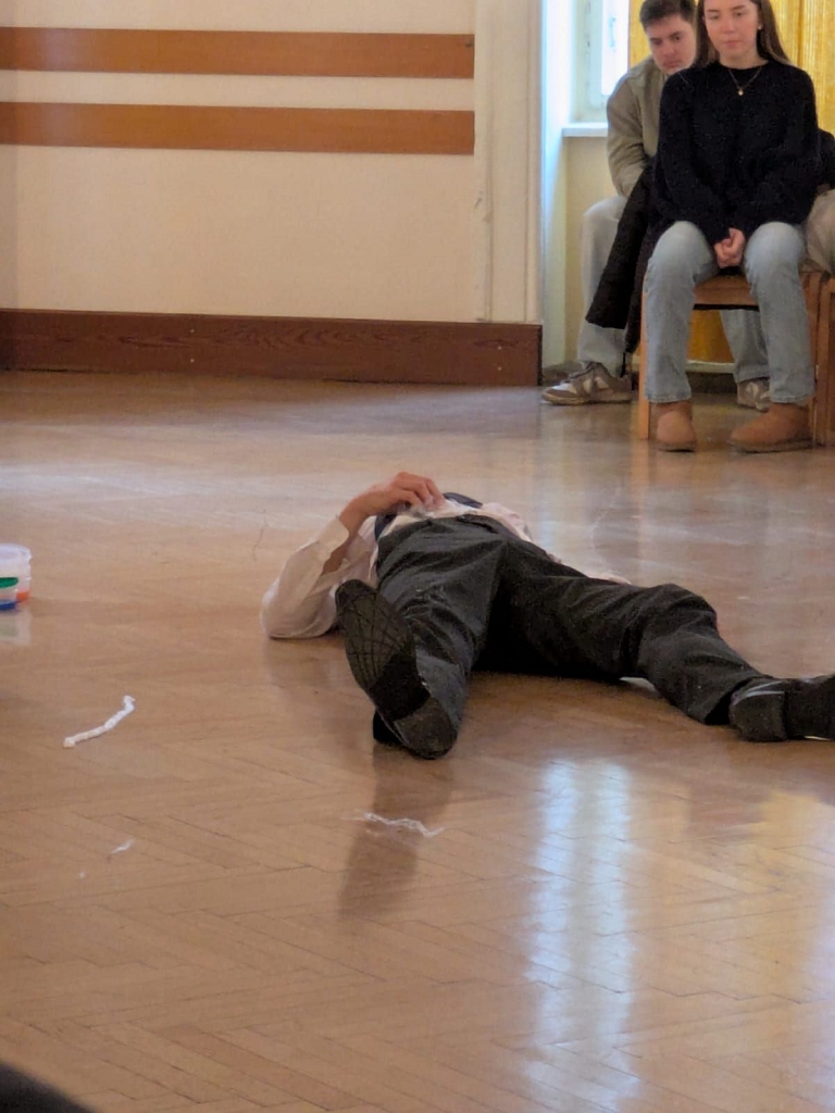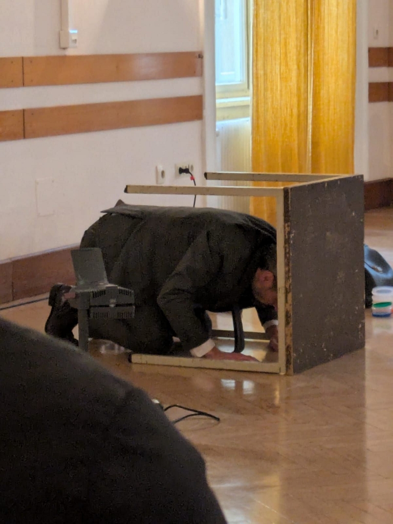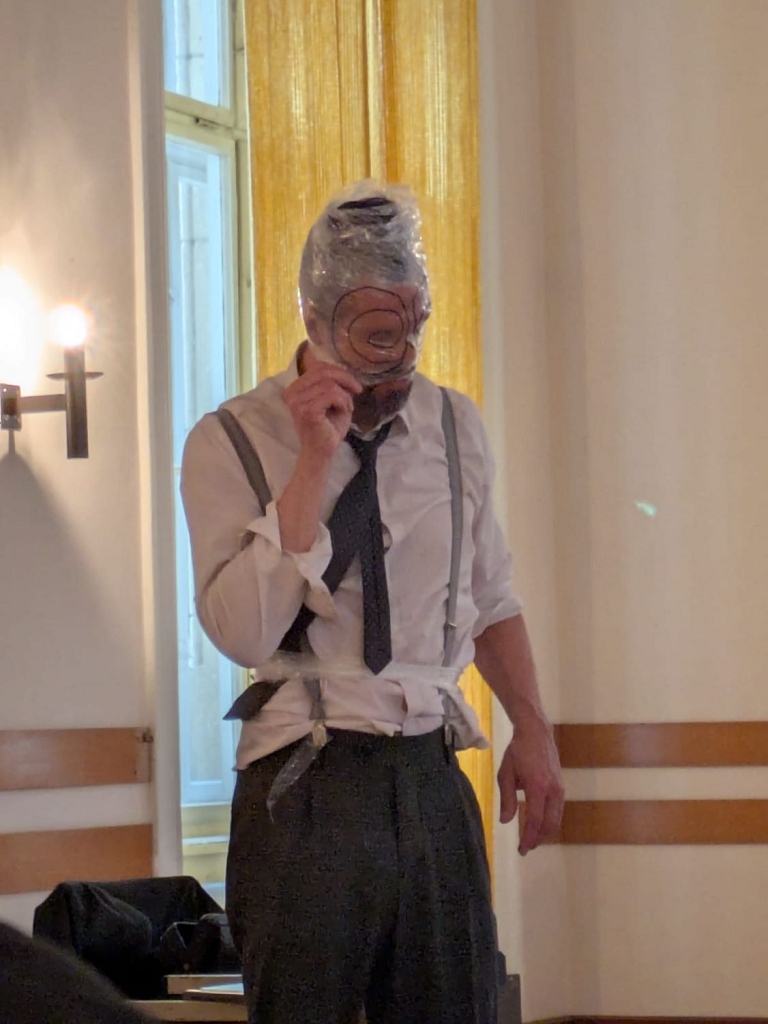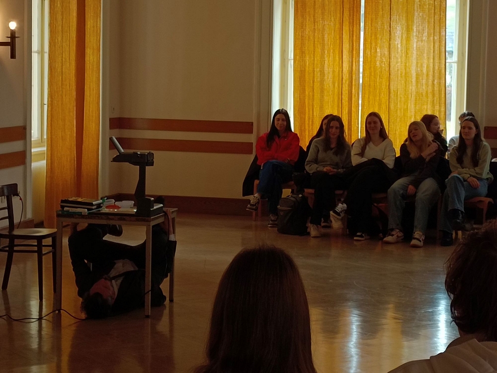 Der aus Graz stammende Schauspieler Matthias Ohner präsentierte an diesem Tag zwei Mal das berühmte Werk „Die Verwandlung“ von Franz Kafka als eine Art Vortragsperformance und wurde für das Publikum zum Tier. Die Schüler:innen der 6., 7. und 8. Klassen hatten die Gelegenheit, in die Welt des Handelsreisenden Gregor Samsa einzutauchen, der sich eines Morgens plötzlich in ein Ungeziefer verwandelt.
