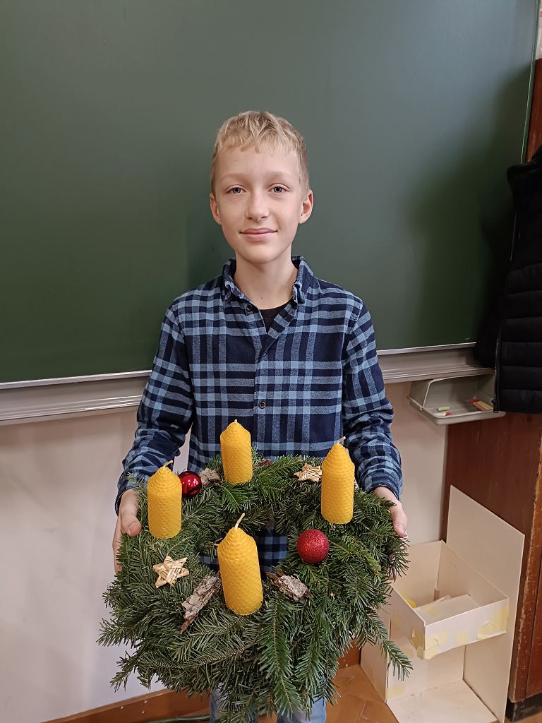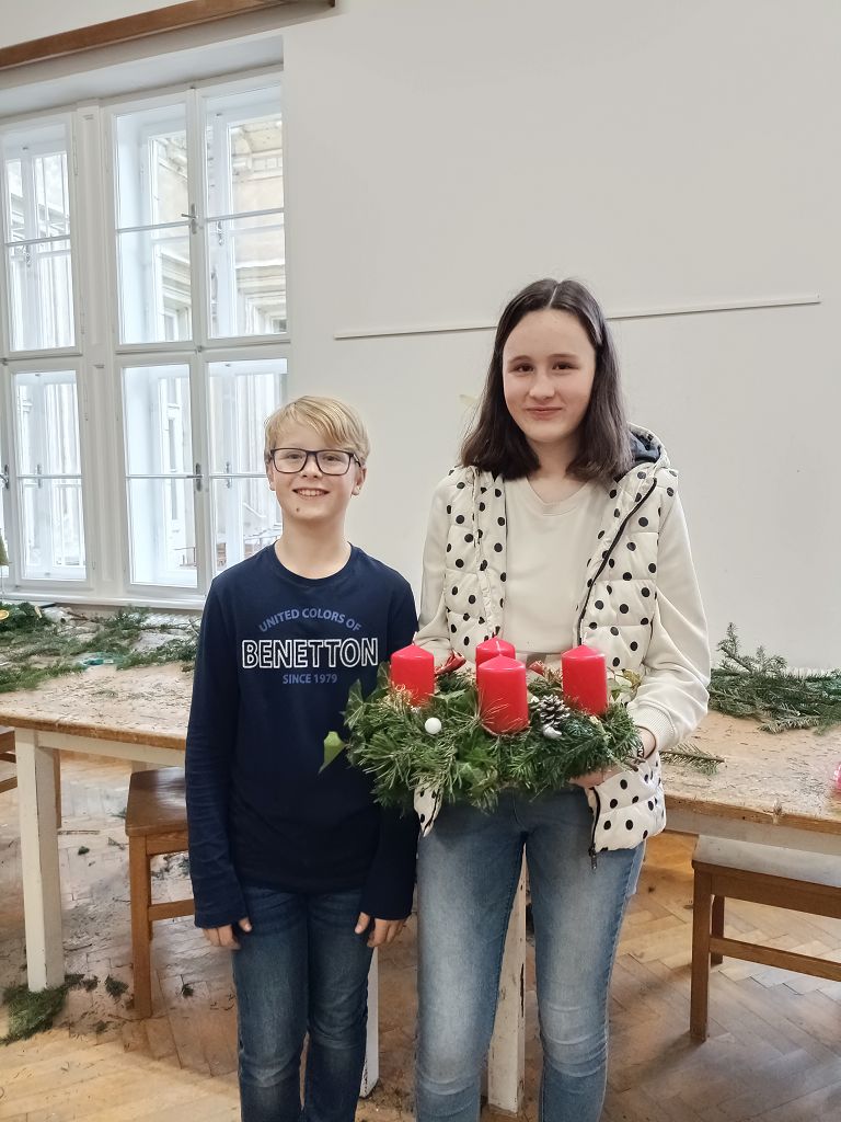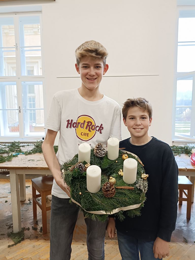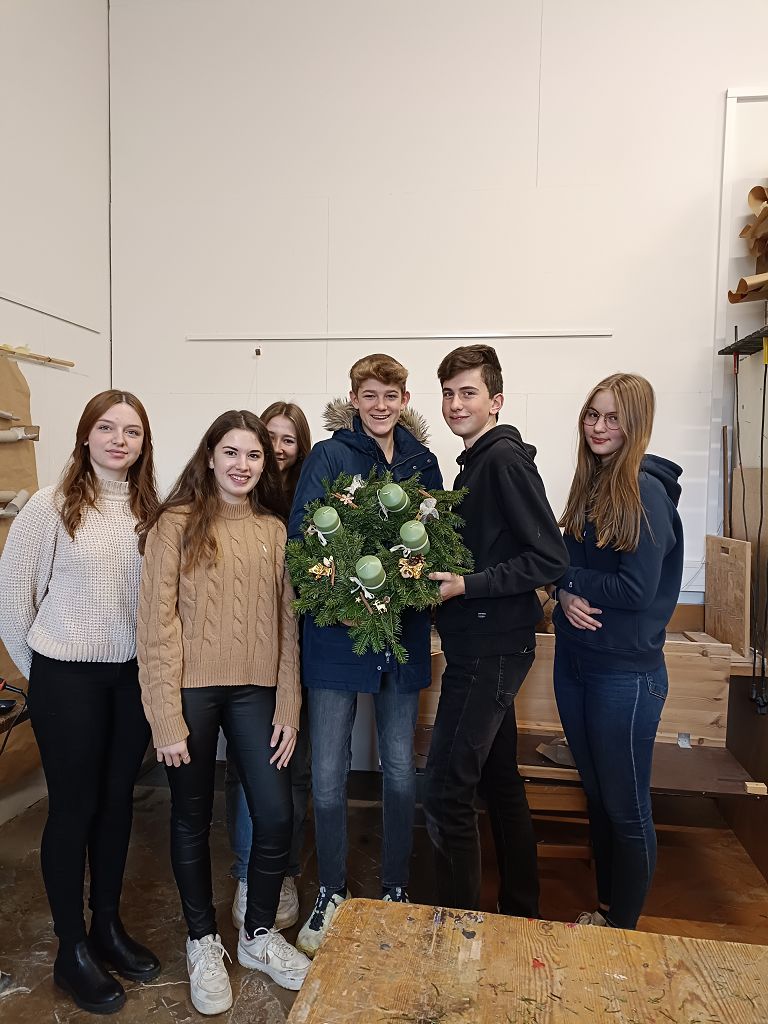 Besonders hervorzuheben ist, dass einige SchülerInnen sich der herausfordernden Aufgabe stellten, die riesigen Adventkränze für die Schule anzufertigen.